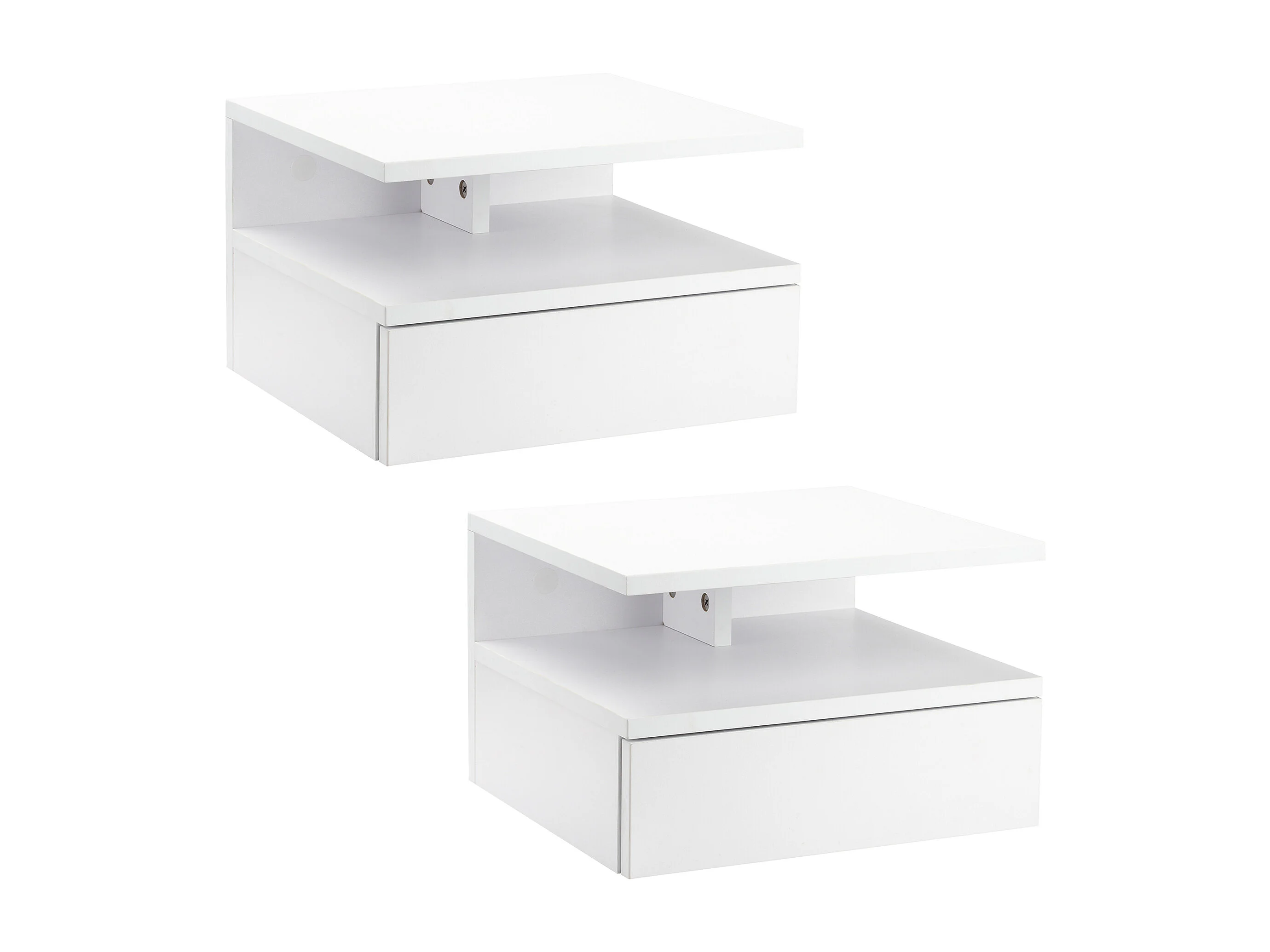 Pack de 2 mesitas de 2 cajones acabado blanco/madera, Medidas: 35cm (Ancho) 30cm (Fondo) 5