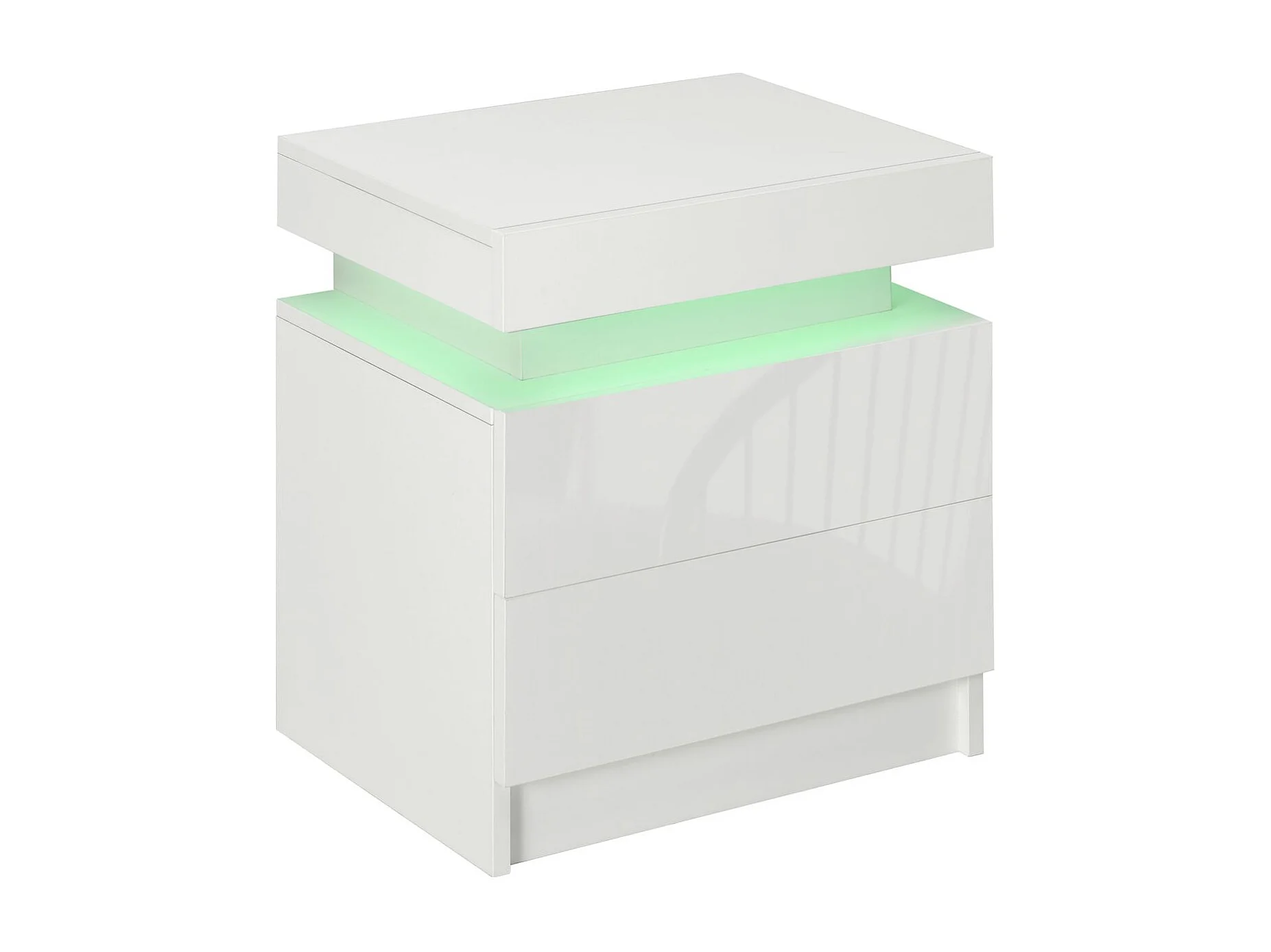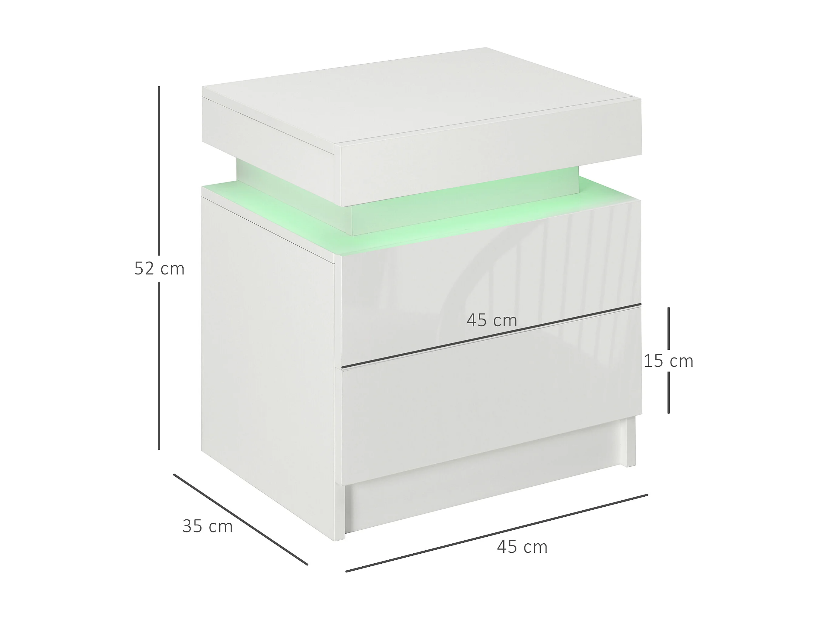Mesa de noche de alto brillo con luces LED, outro de ahogamiento 2 cajones muebles de dormitorio de mesa nocturna - 45x35x52cm - blanco