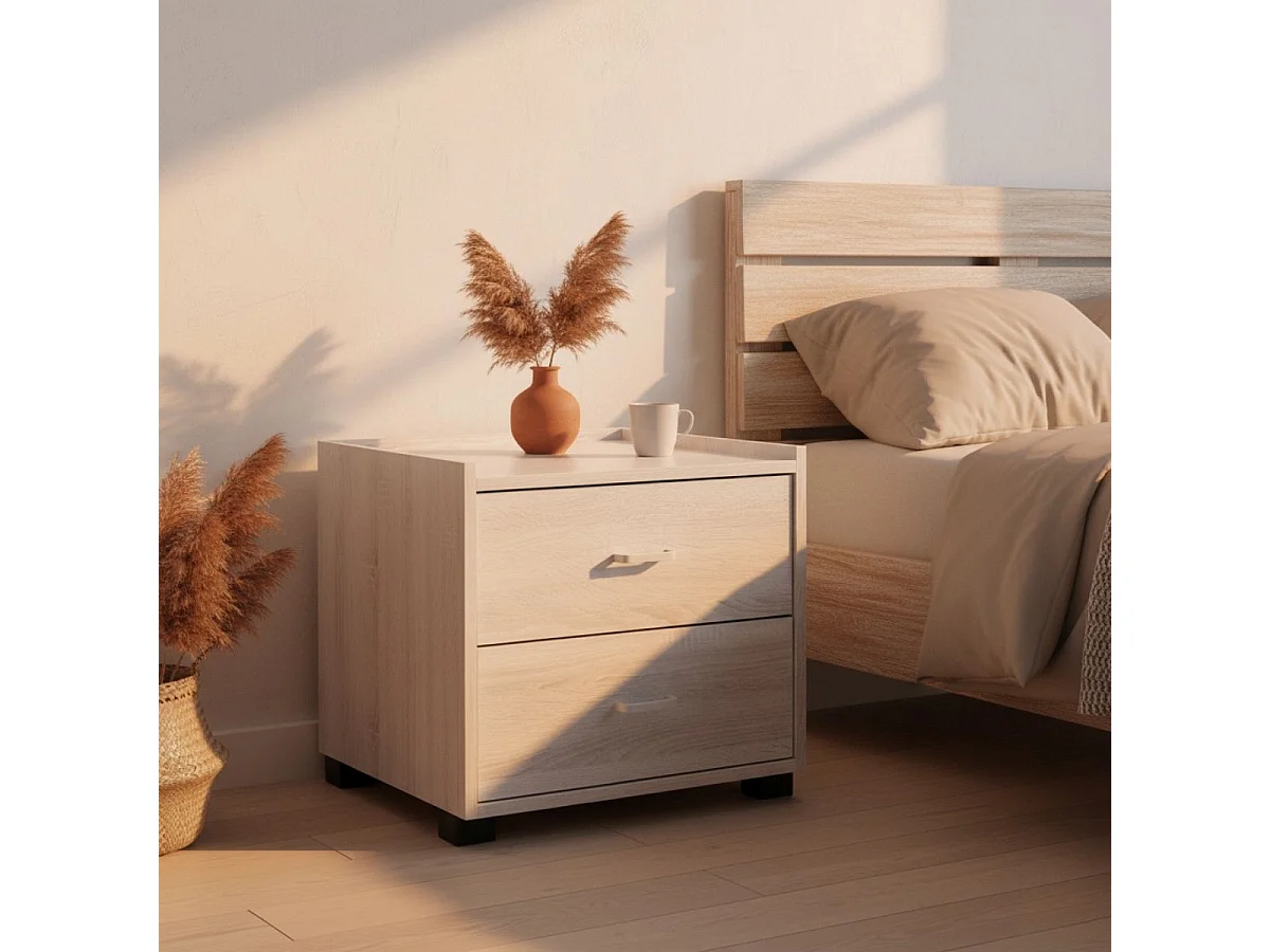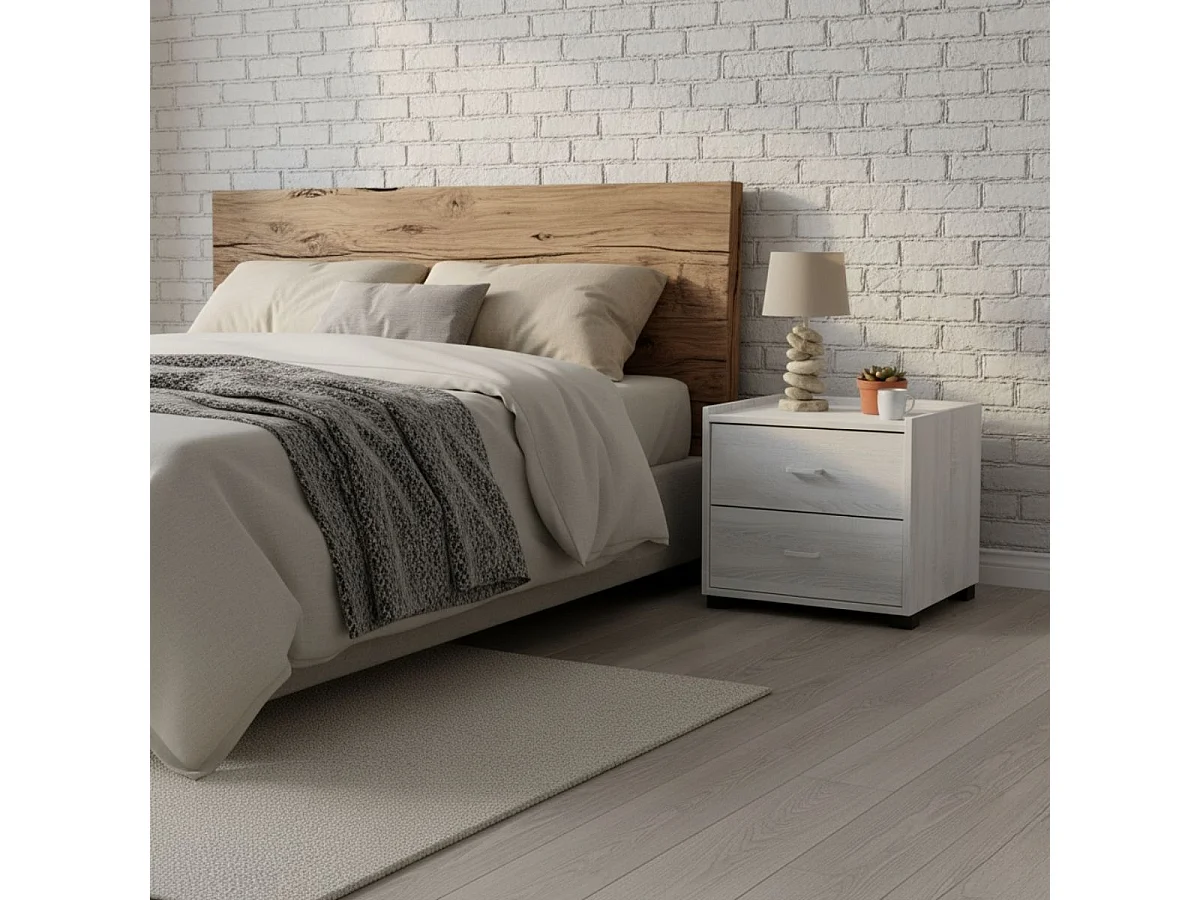 Mesita de noche MOA Vinthera 2 cajones blanco/madera 62,5x40x30 cm