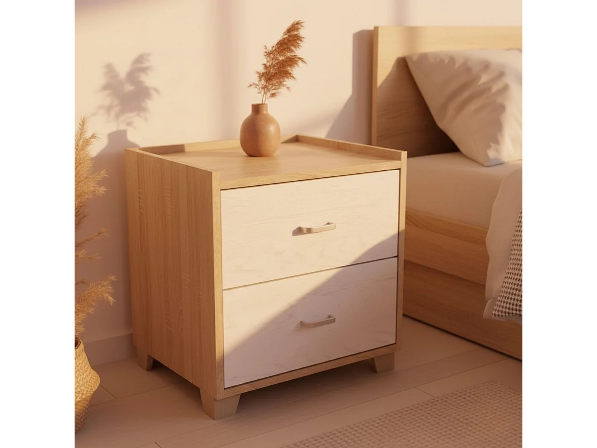 Mesita de noche MOA Vinthera 2 cajones blanco/madera 62,5x40x30 cm