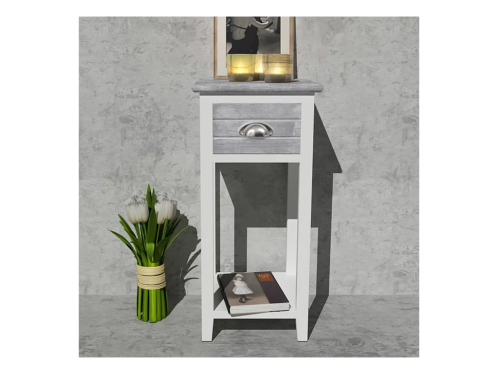 Mesita de noche con 1 cajón gris y blanca ES68646