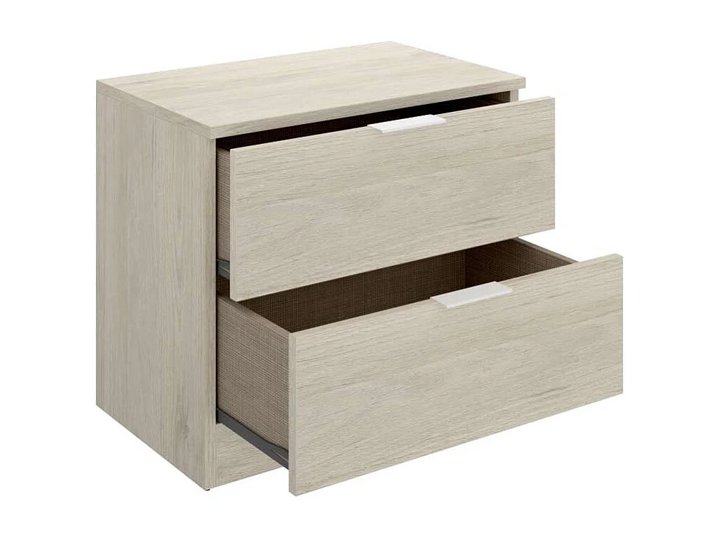 Mesita de noche con 2 cajones acabado natural, 45.5cm(alto) 50cm(ancho) 34cm(fondo)