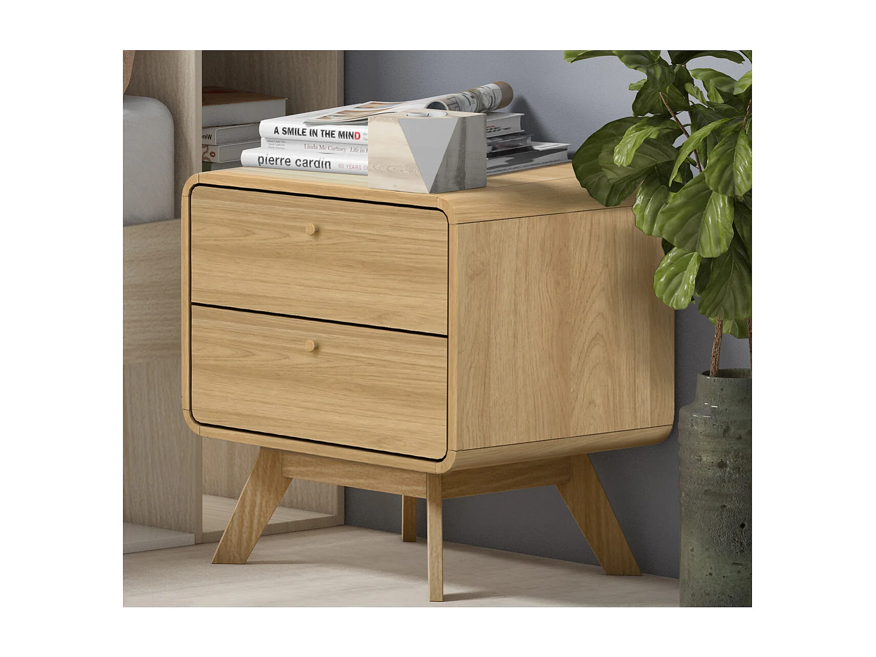 Mesita de noche con 2 cajones en tablero aglomerado roble