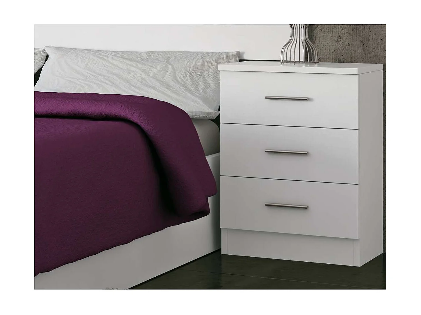 Mesita de noche 3 cajones Maxi acabado blanco, 65cm(alto) 46cm(ancho) 35cm(fondo)