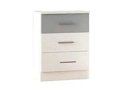 Mesita de noche con 3 cajones acabado blanco-plata, 66cm(alto) 46cm(ancho) 33cm(fondo)