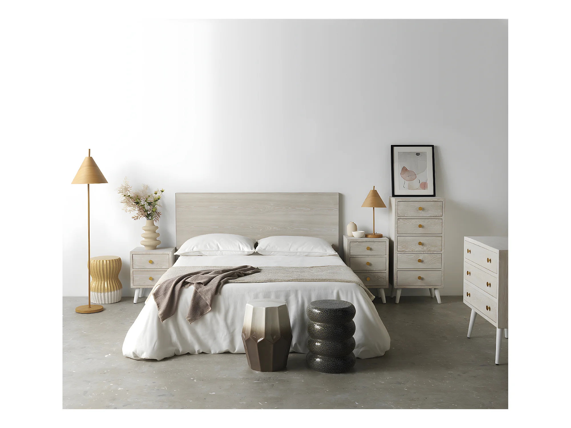 Mesita de noche con 2 cajones chapada en fresno patinado blanco