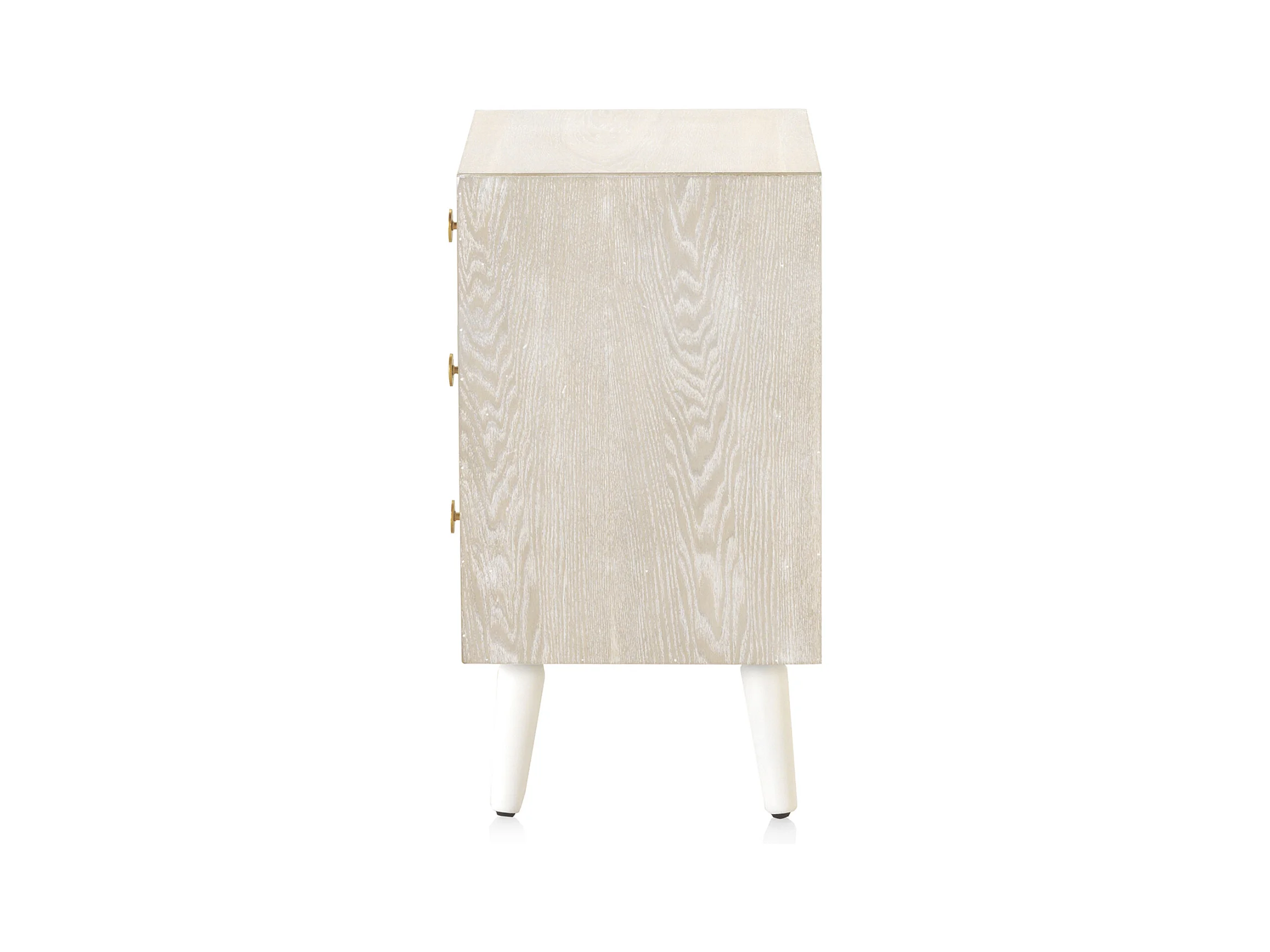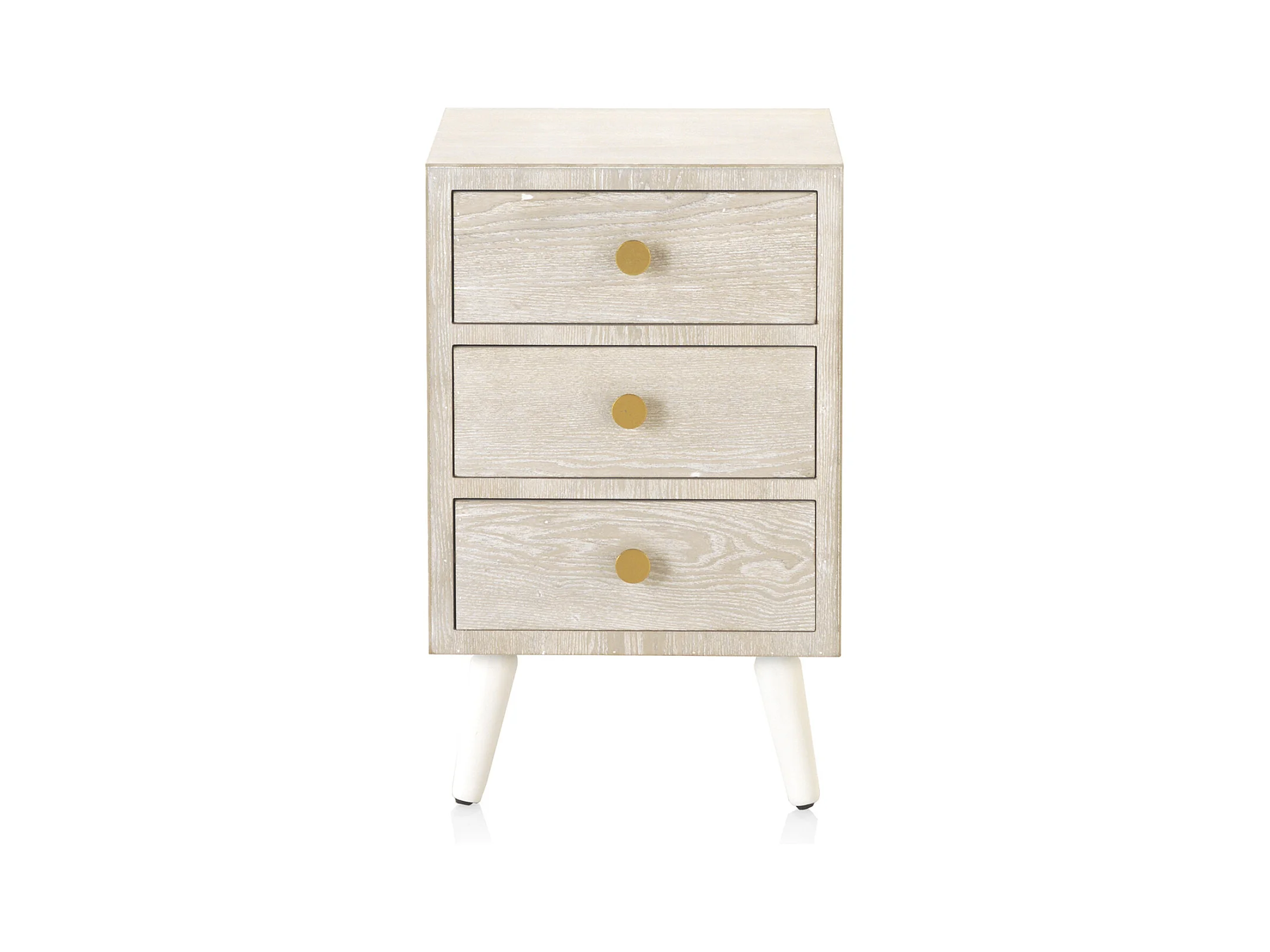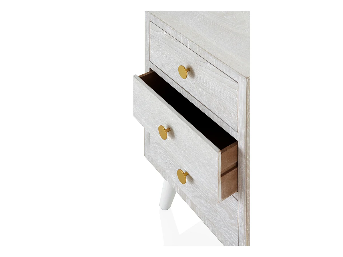 Mesita de noche con 3 cajones chapada en fresno patinado blanco
