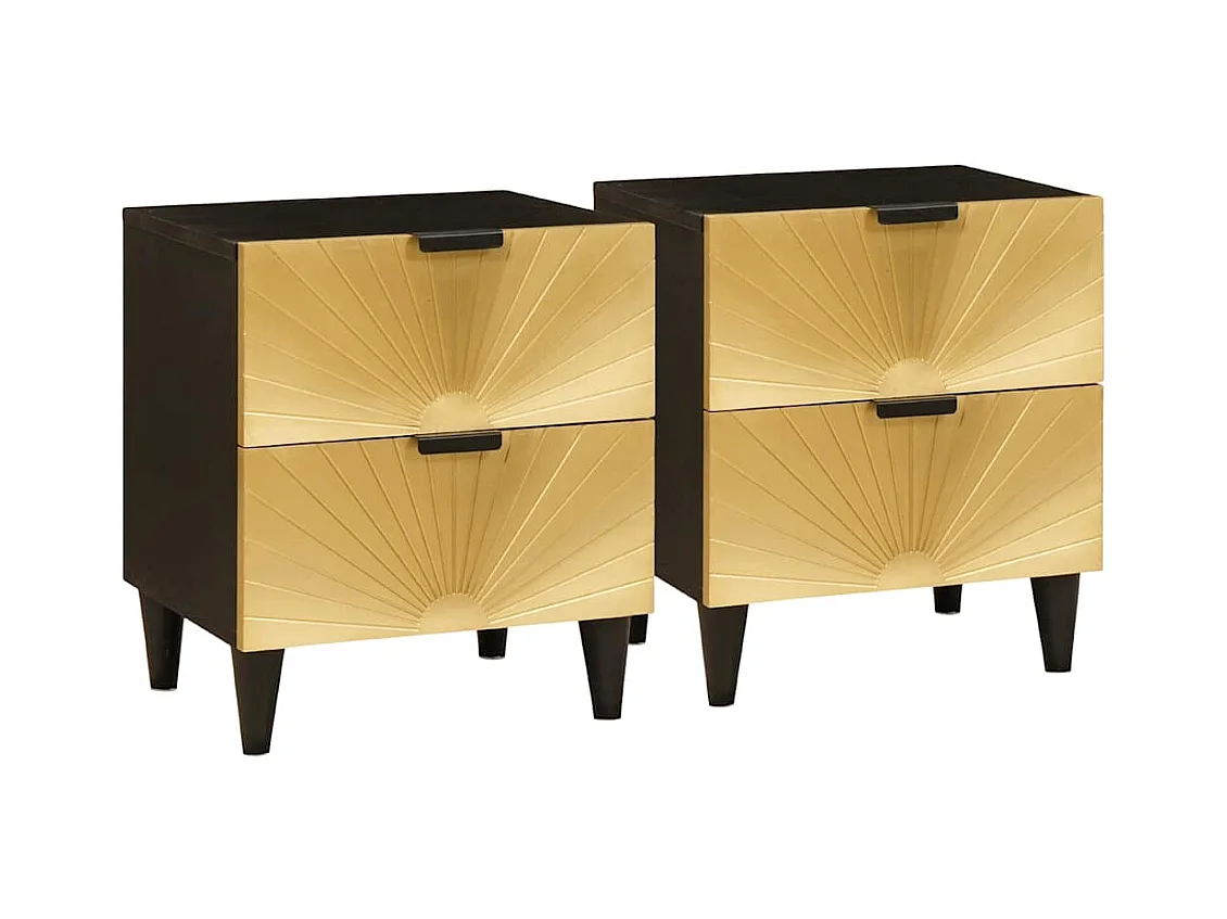 Mesita de noche 2 piezas Negro y dorado 40 x 33,5 x 46 cm