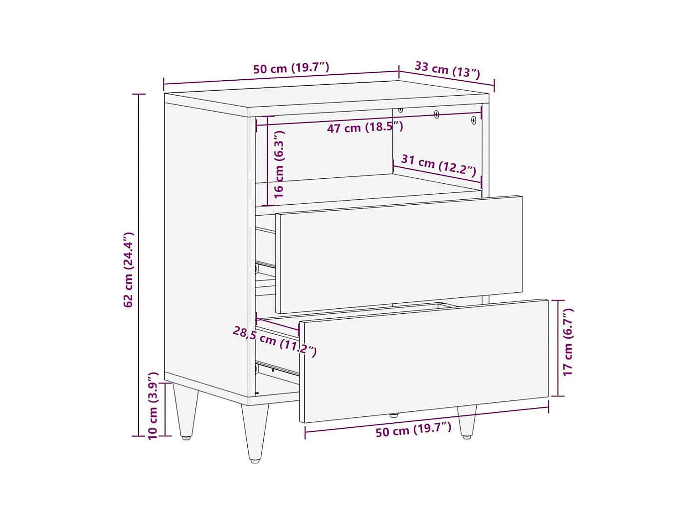 Mesilla de noche de nogal 50 x 33 x 60 cm madera maciza de mango