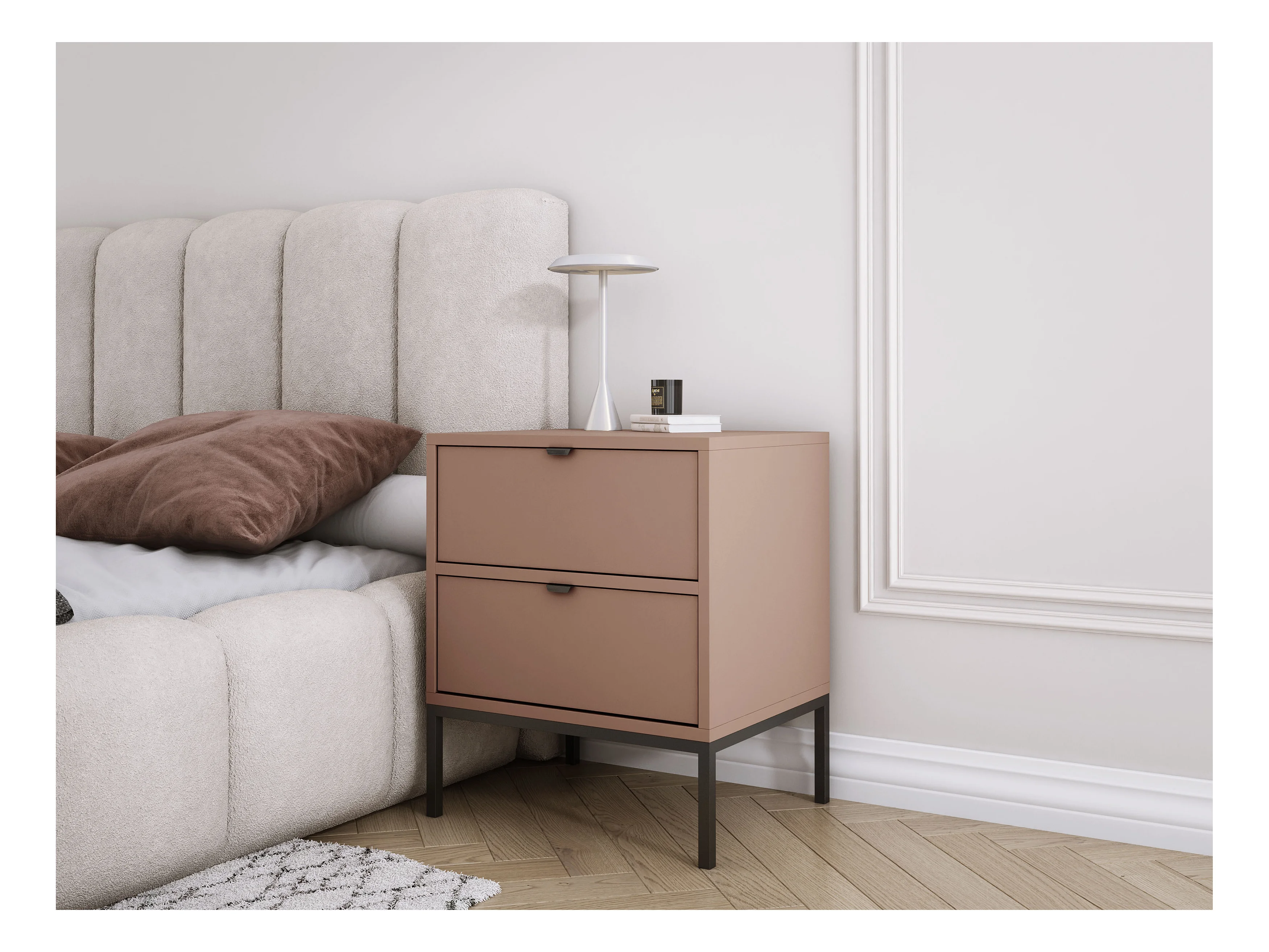 Mesita de noche con dos cajones y estructura, tirador dorado, color CAJUN, 50 x 40 x 58 cm