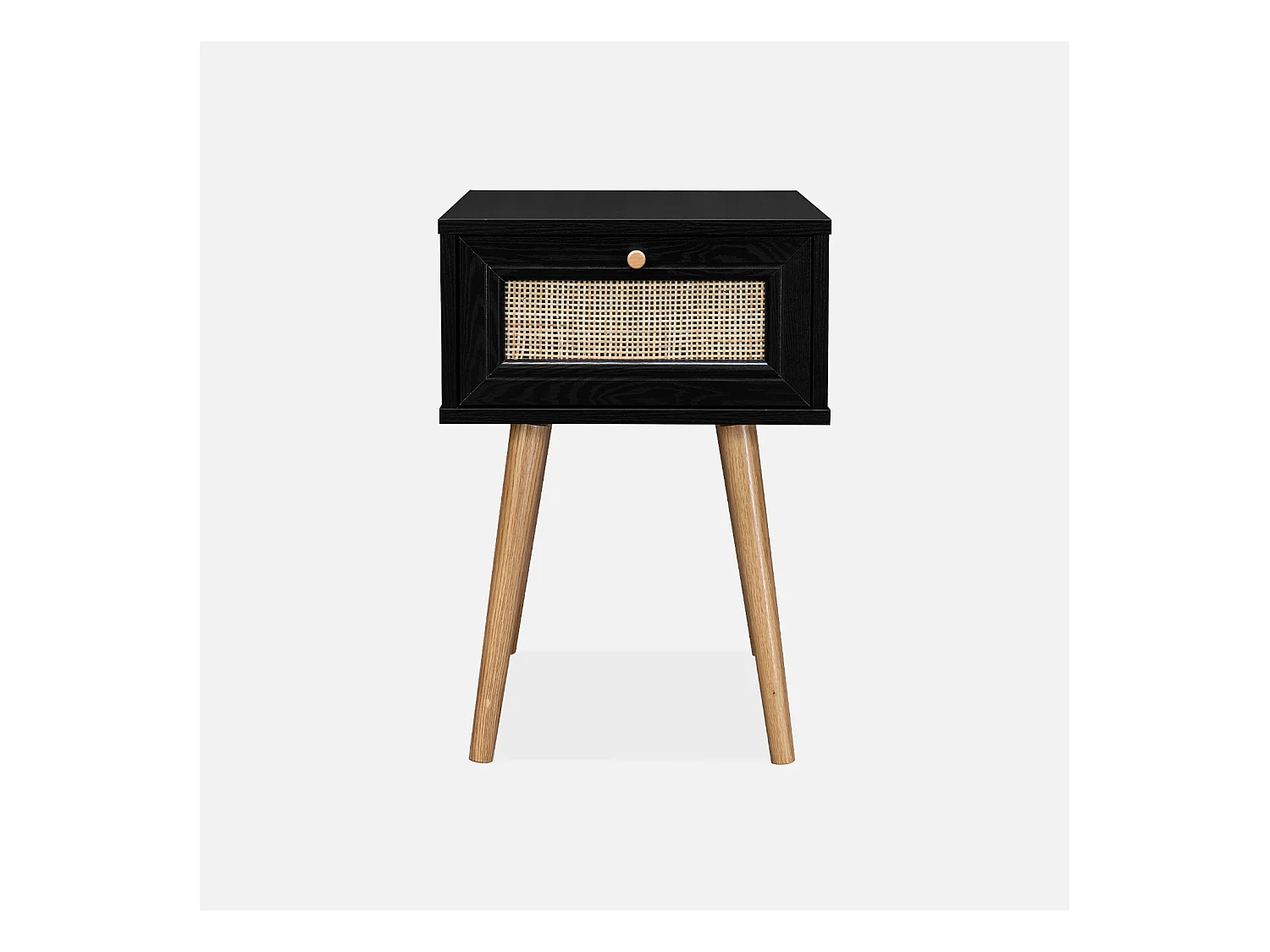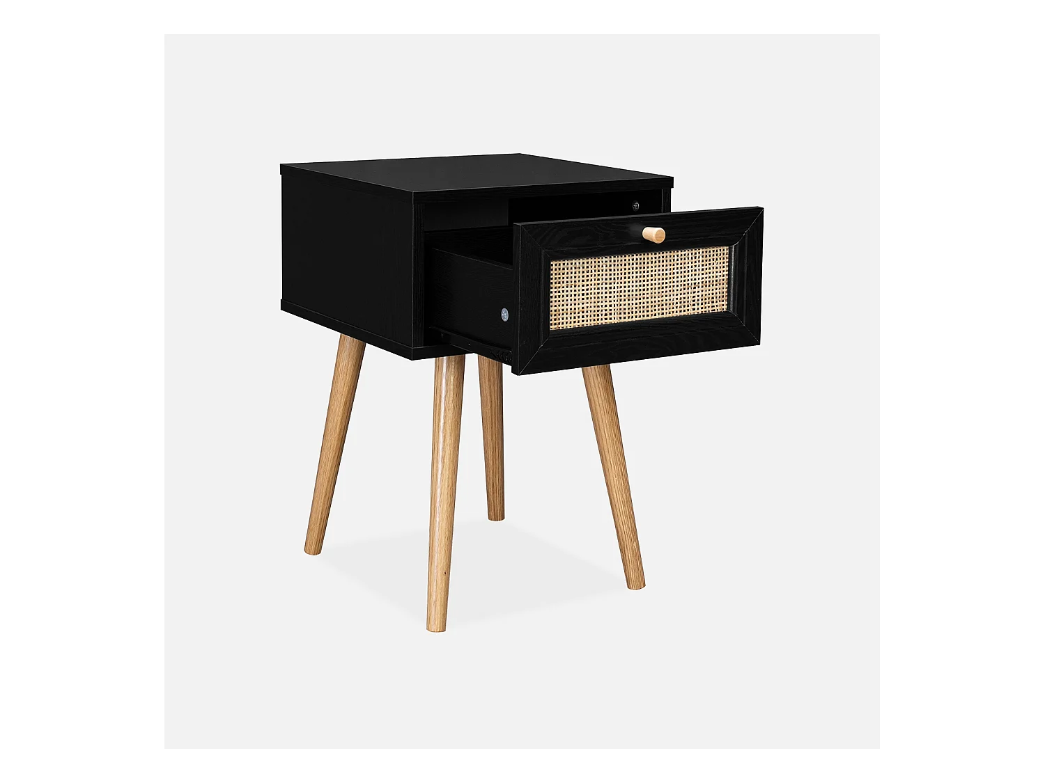 Mesita de noche de 1 cajón con efecto madera y caña negro