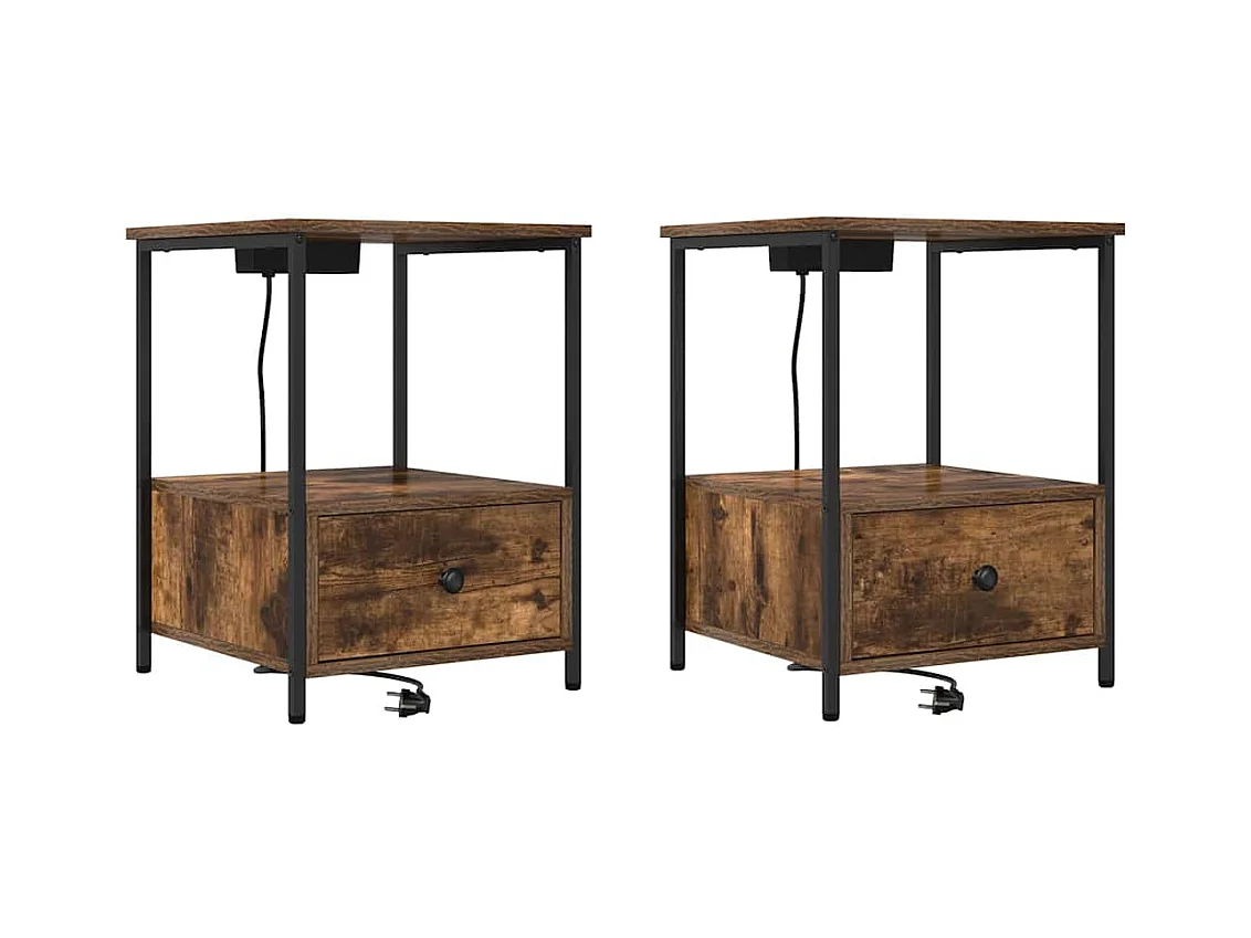 Mesita de noche con estación de carga 2 piezas Roble ahumado