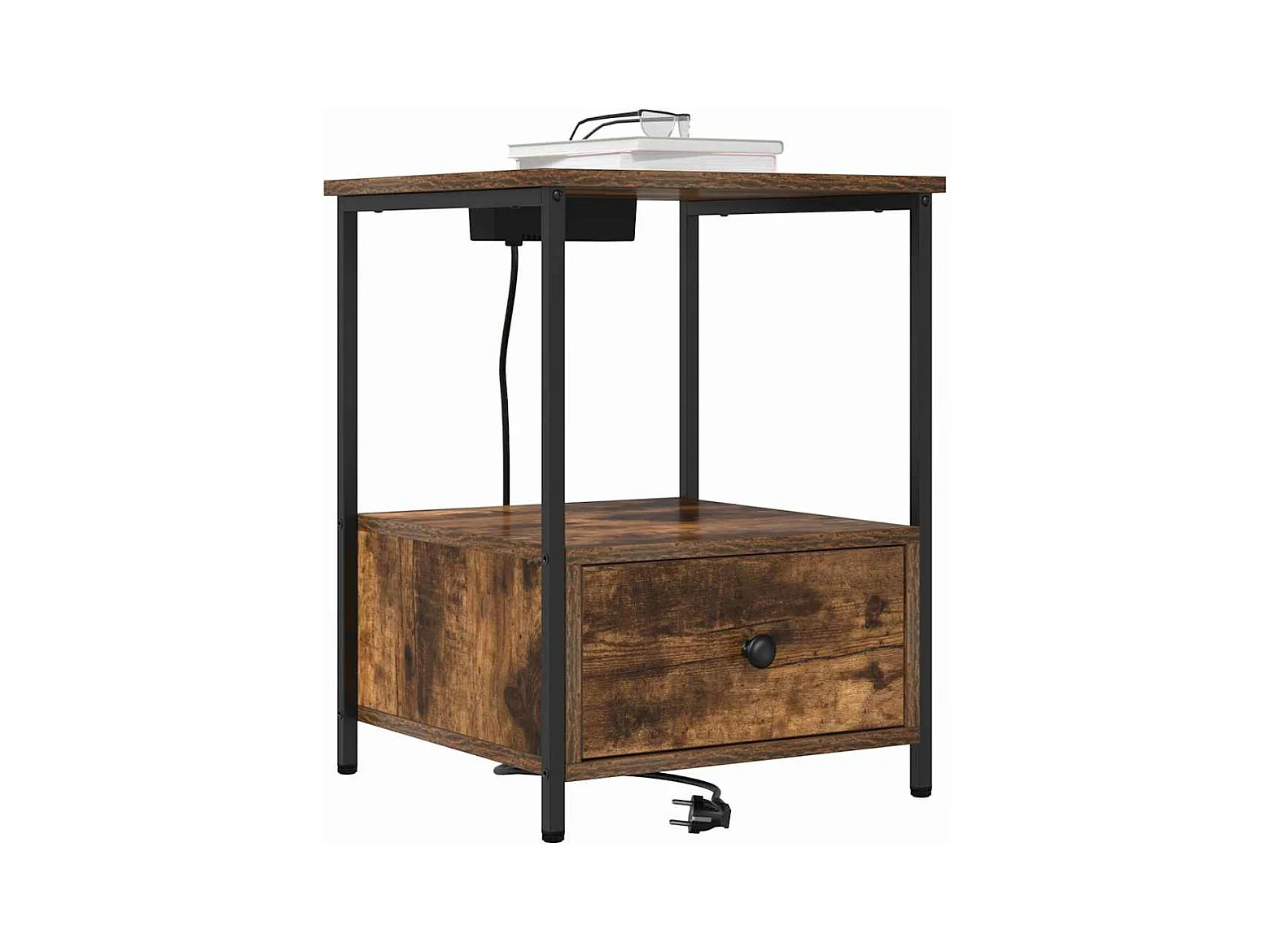 Mesilla de noche con estación de carga con cajón Roble ahumado
