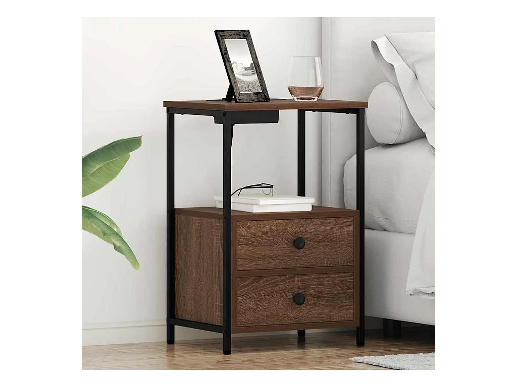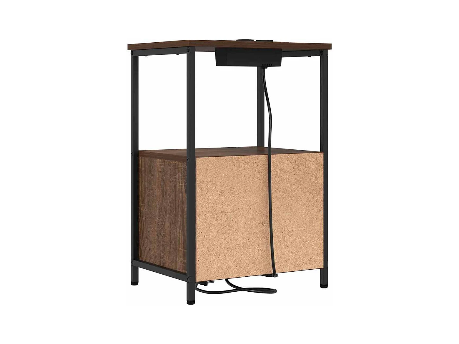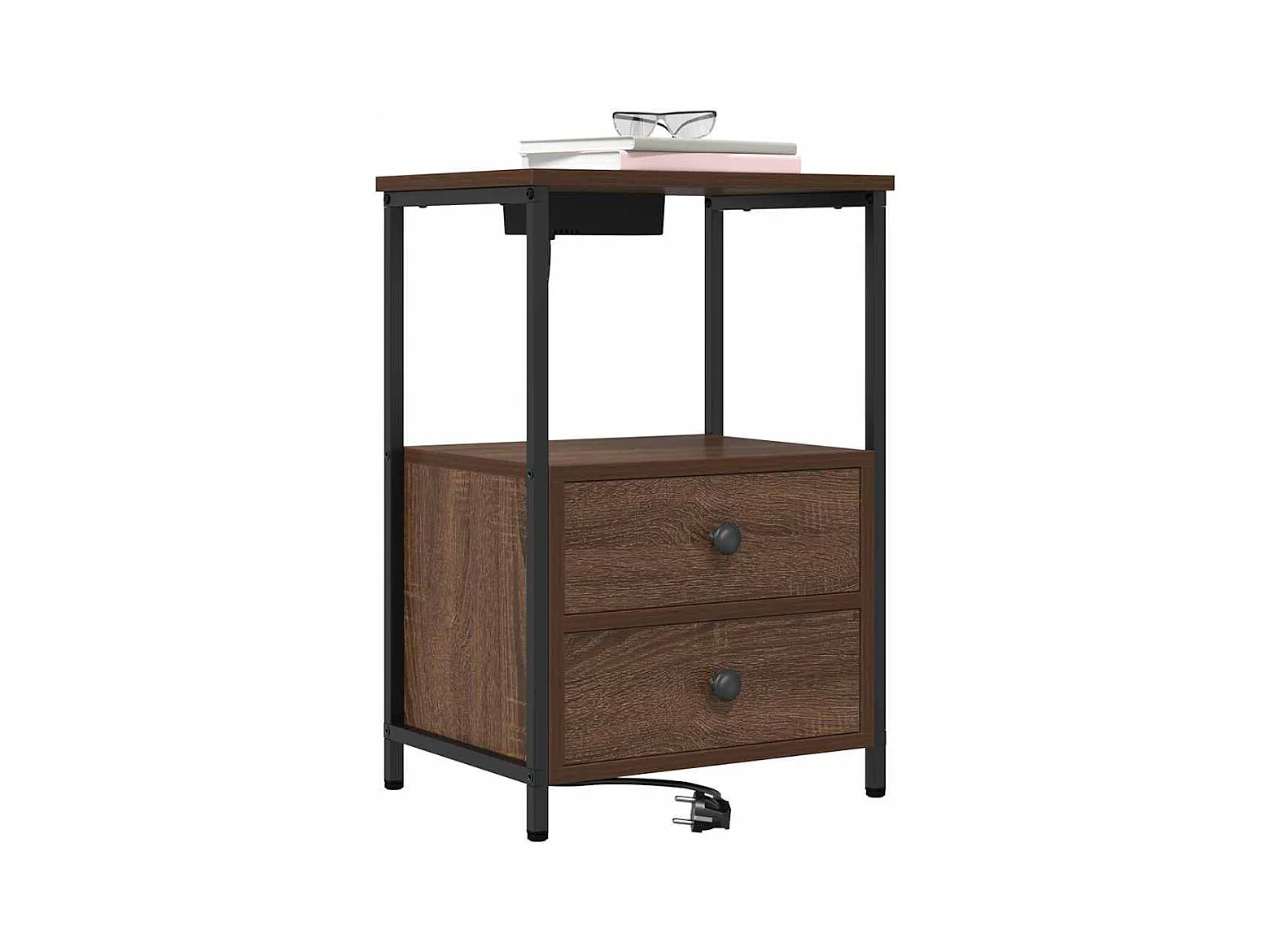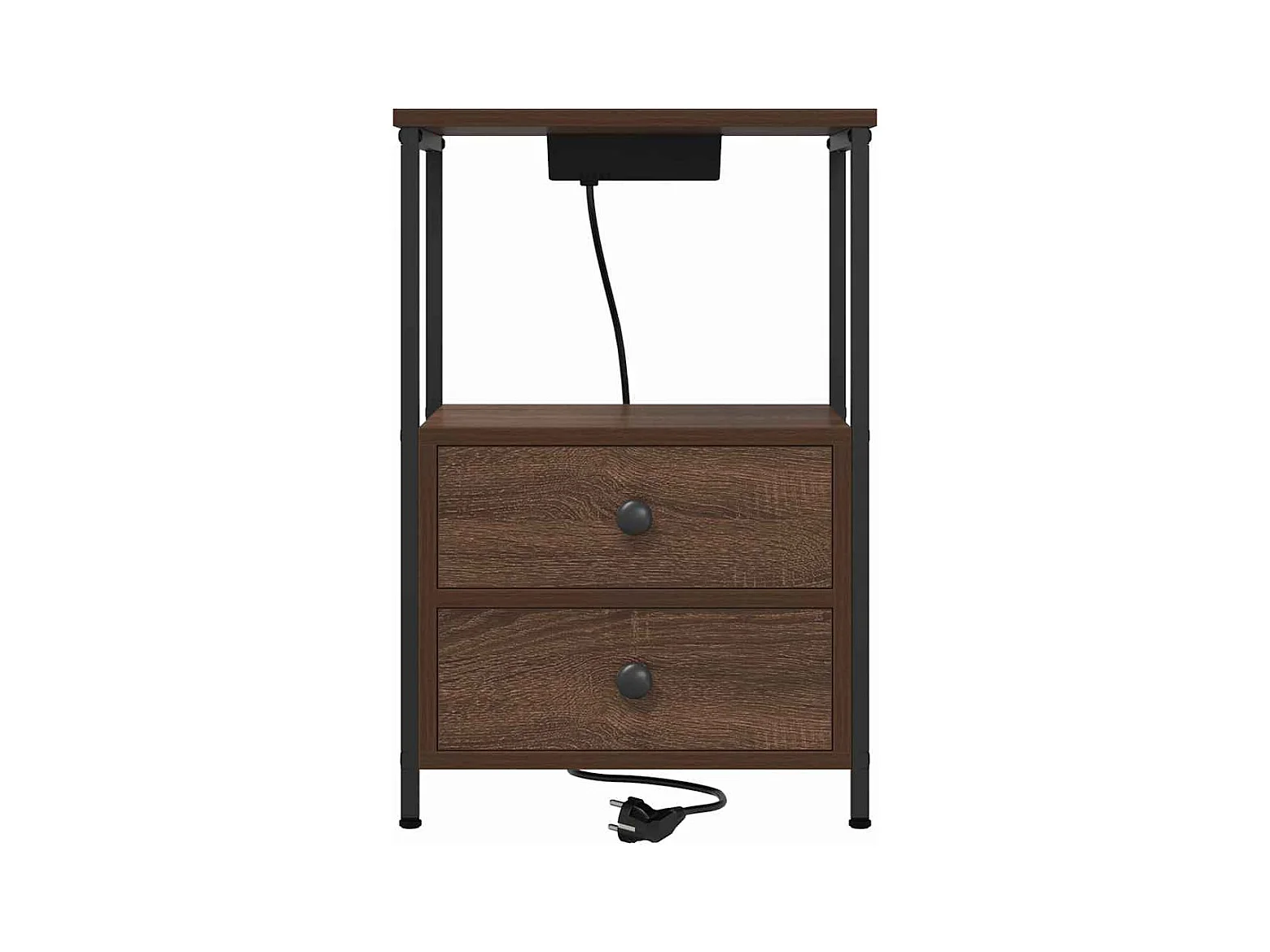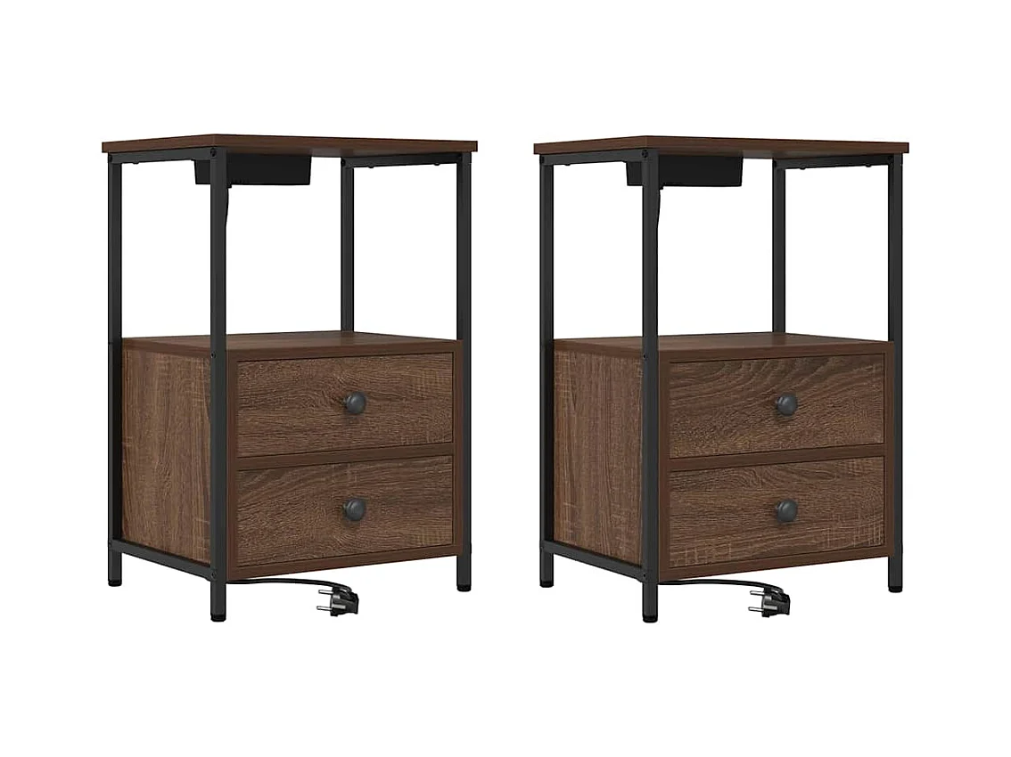 Mesita de noche con estación de carga 2 piezas Roble Marrón