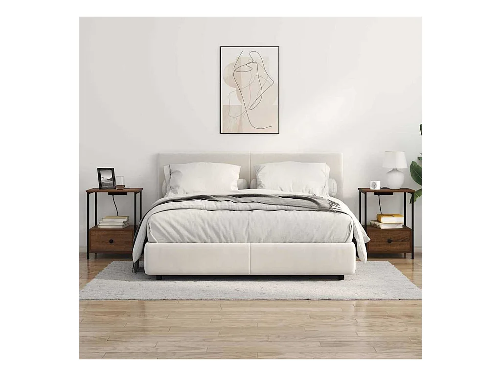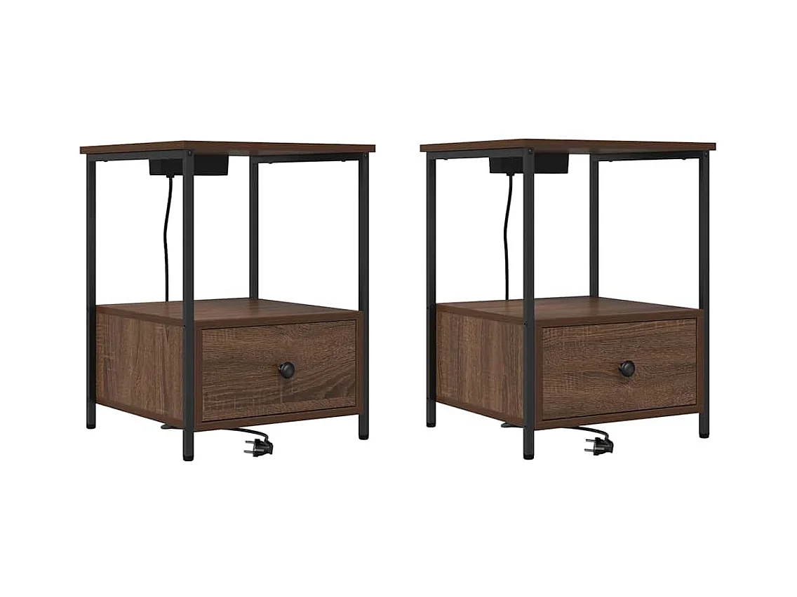 Mesita de noche con estación de carga 2 piezas Roble Marrón