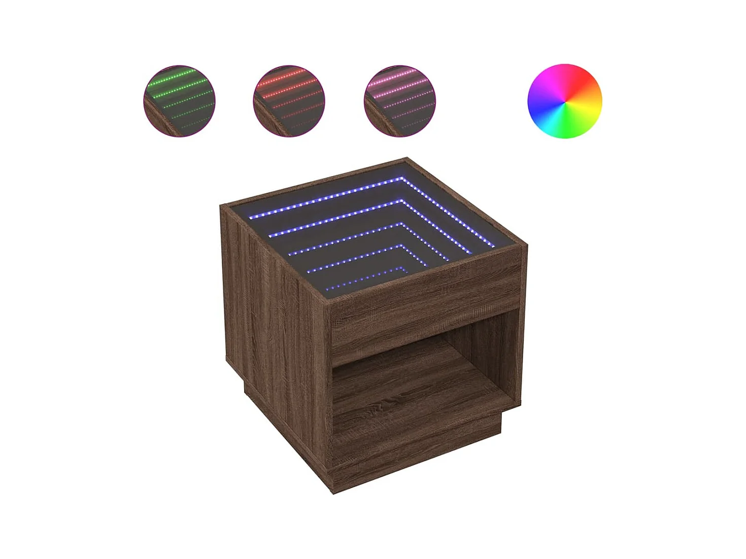Mesita de noche con Infinity LED marrón roble 50x50x50 cm