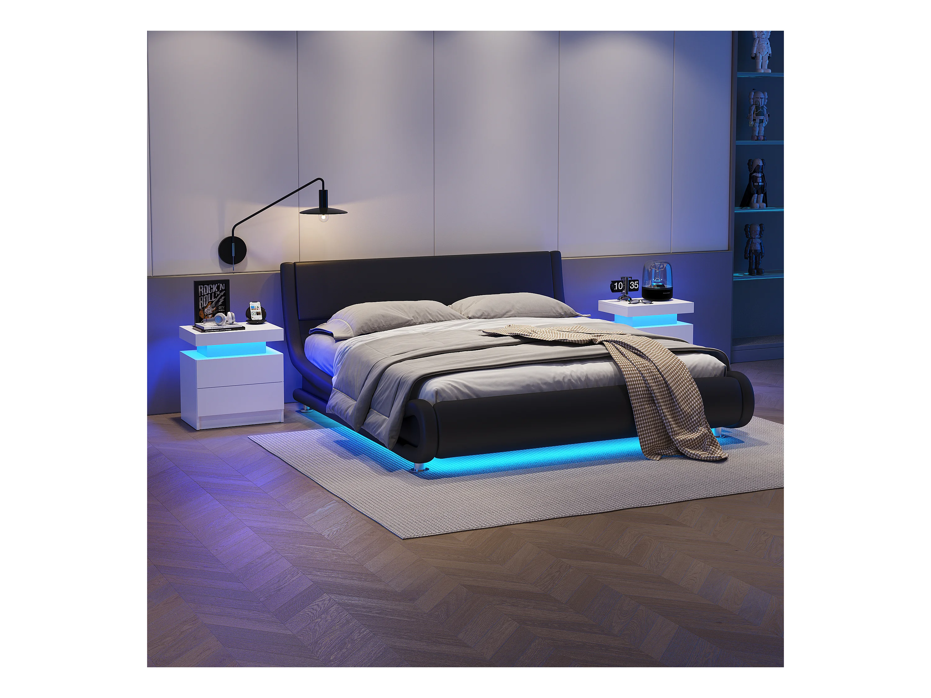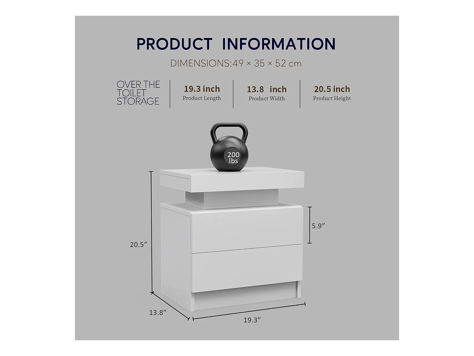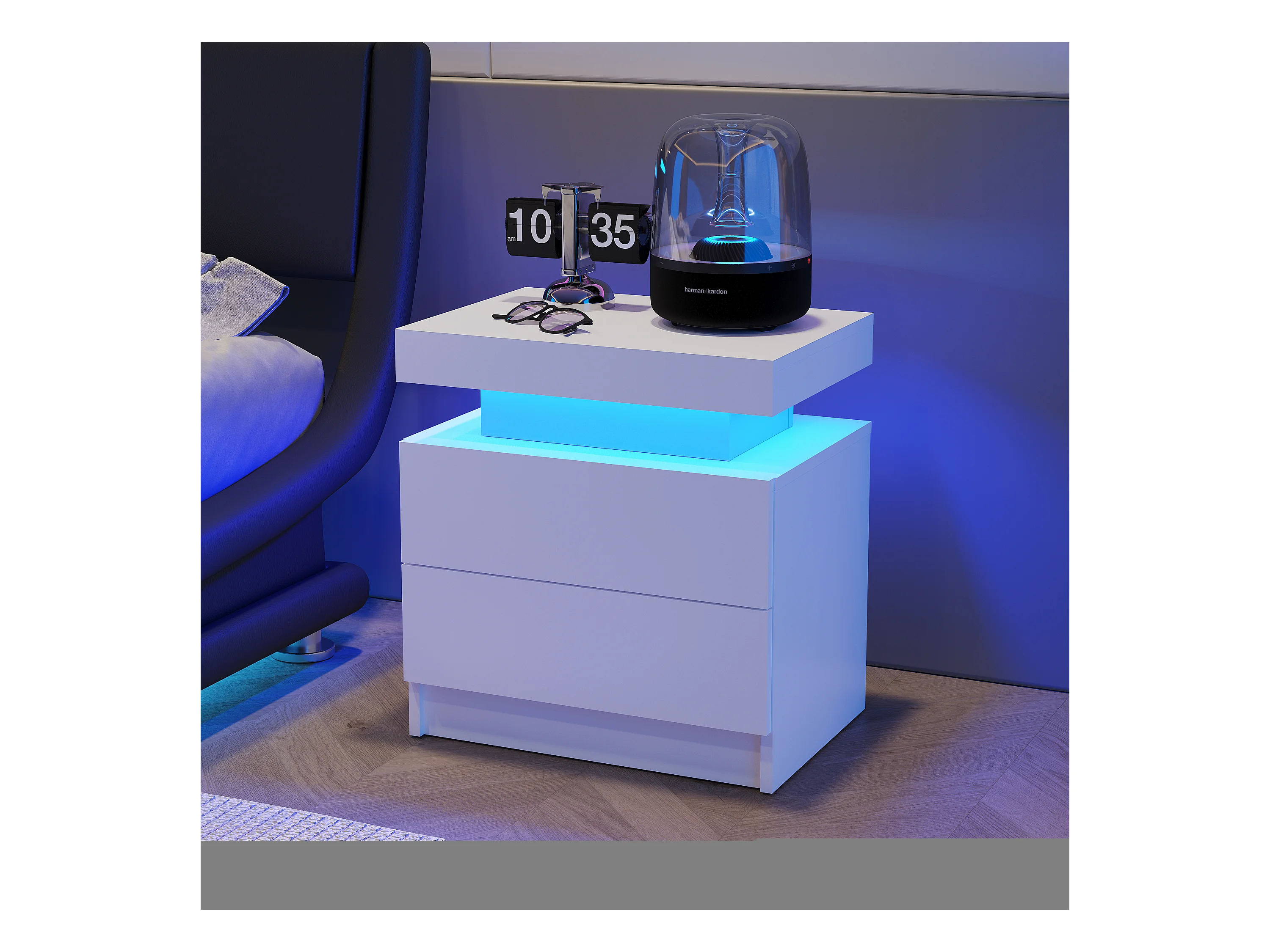 Mesita de noche con LED, 2 cajones, aglomerado, blanco (50x53x36 cm)