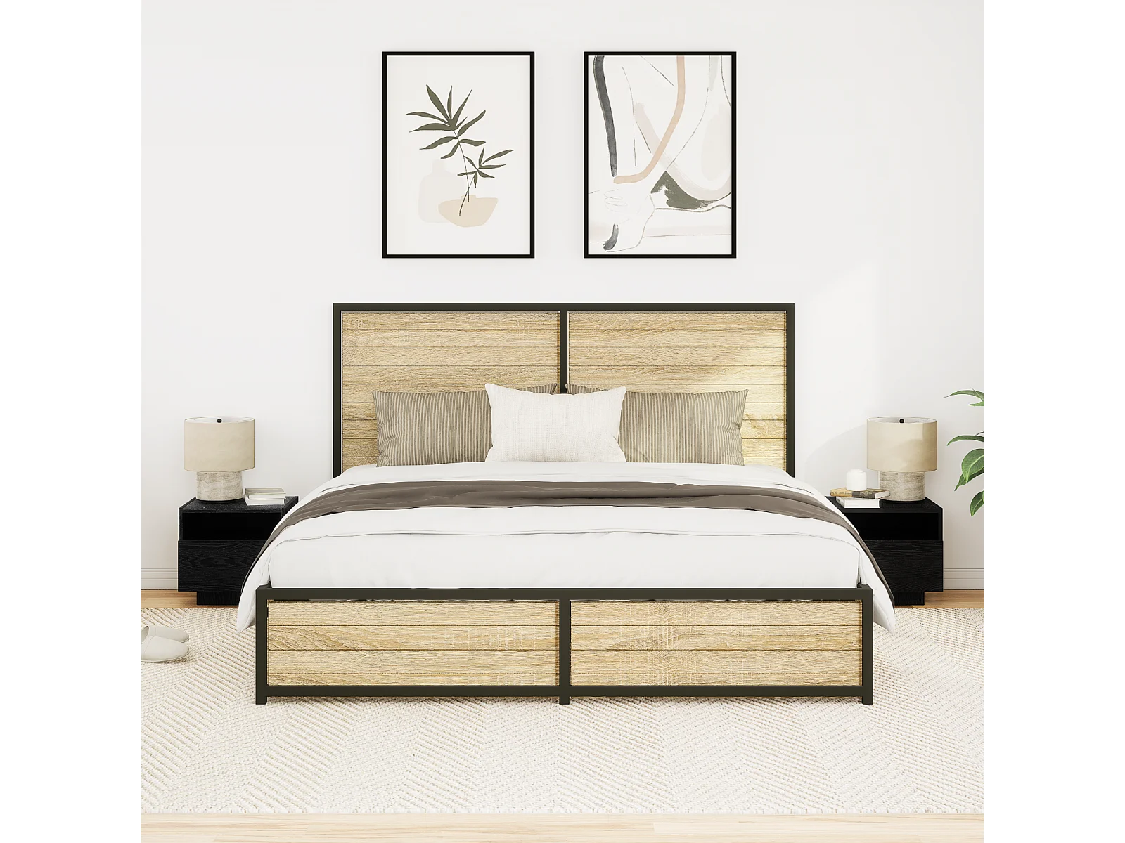 Mesita de noche con luces LED 2 uds Roble negro 40x39x37 cm
