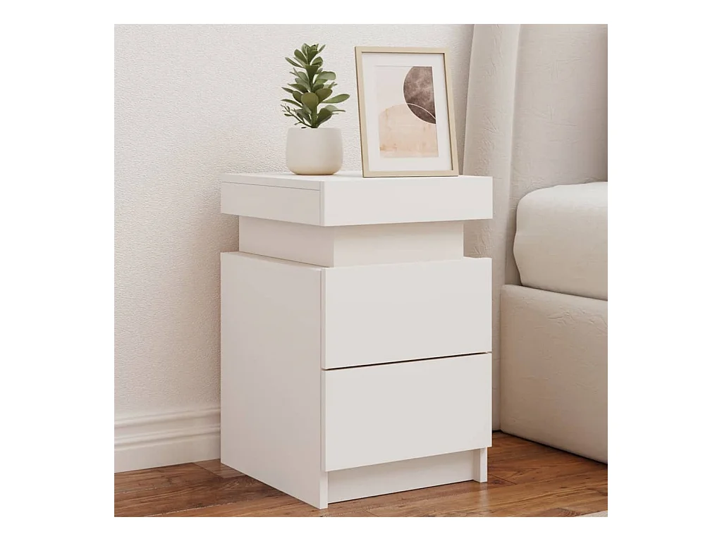 Mesita de noche con luces LED contrachapada blanco 60x35x40 cm ES79506