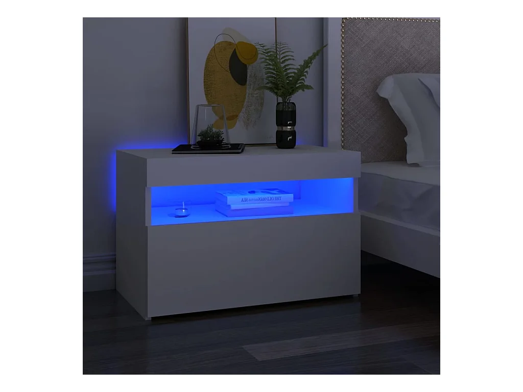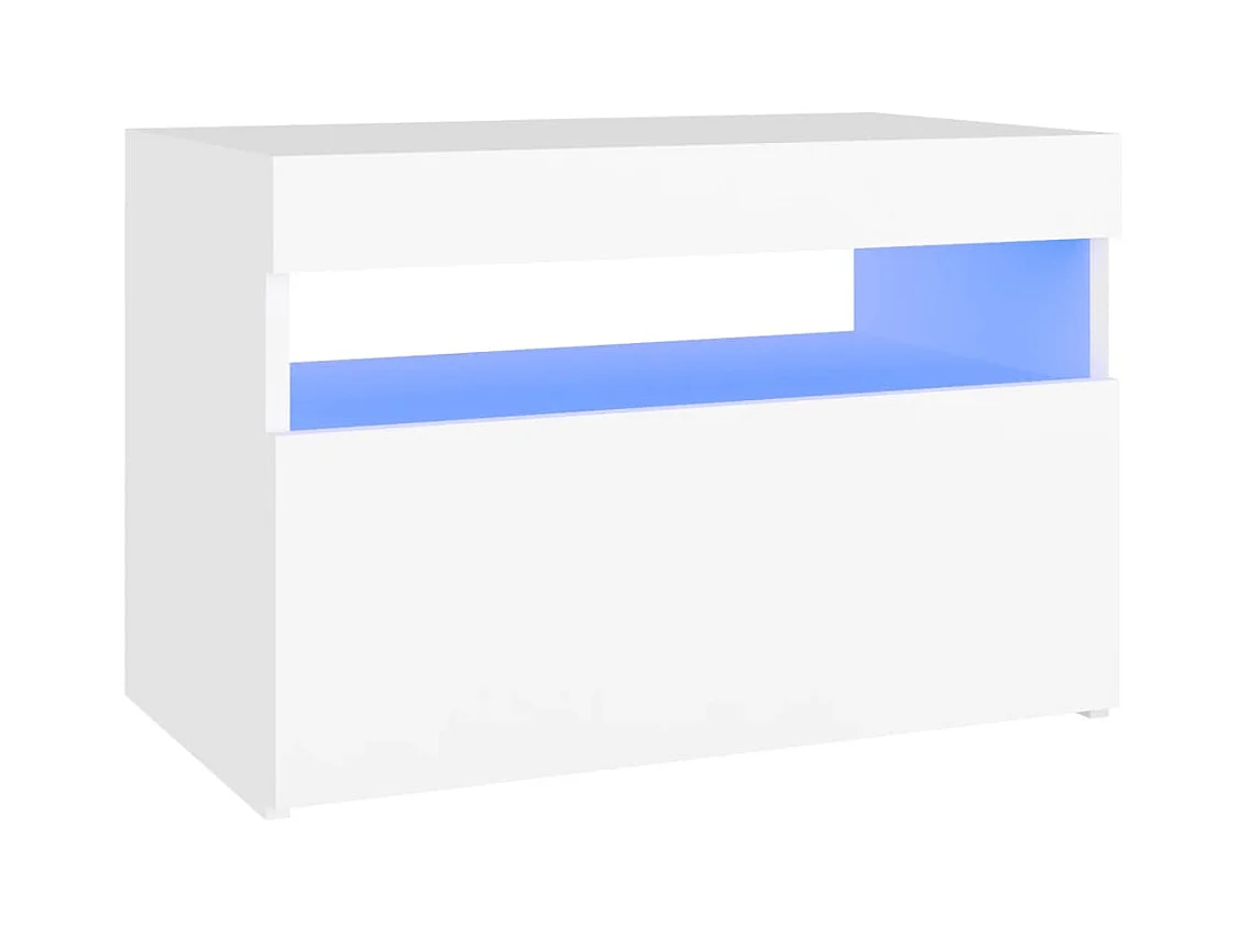 Mesita de noche con luces LED contrachapada blanco 60x35x40 cm ES79506