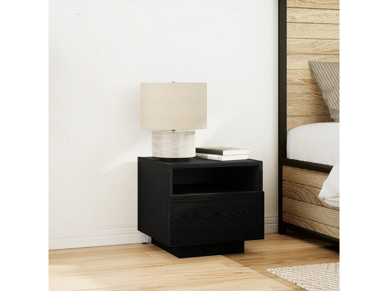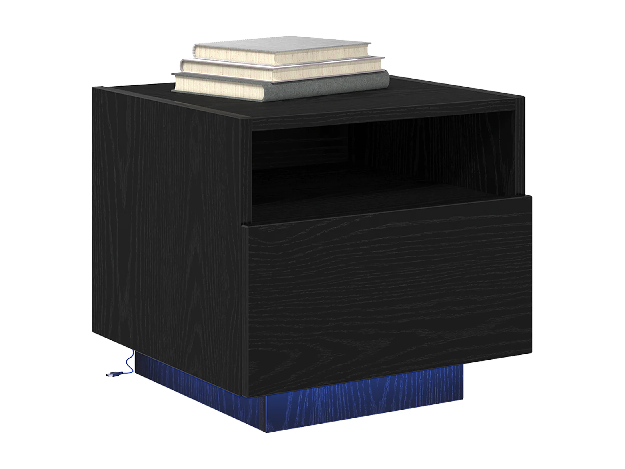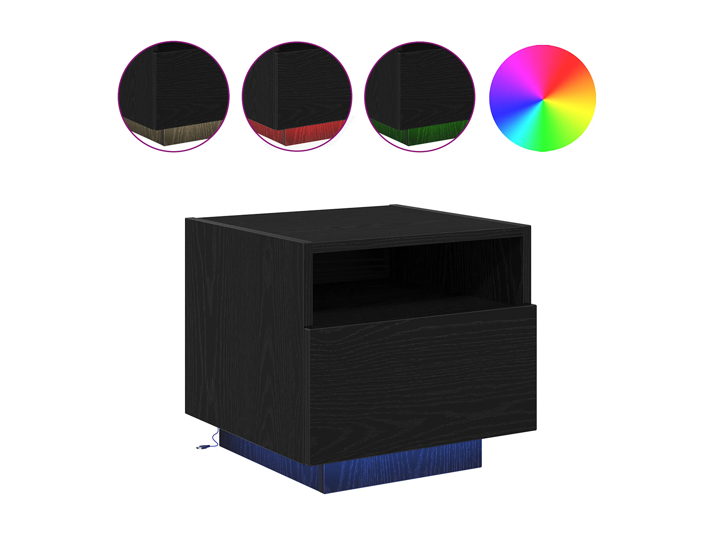 Mesita de noche con luces LED negra 40x39x37 cm