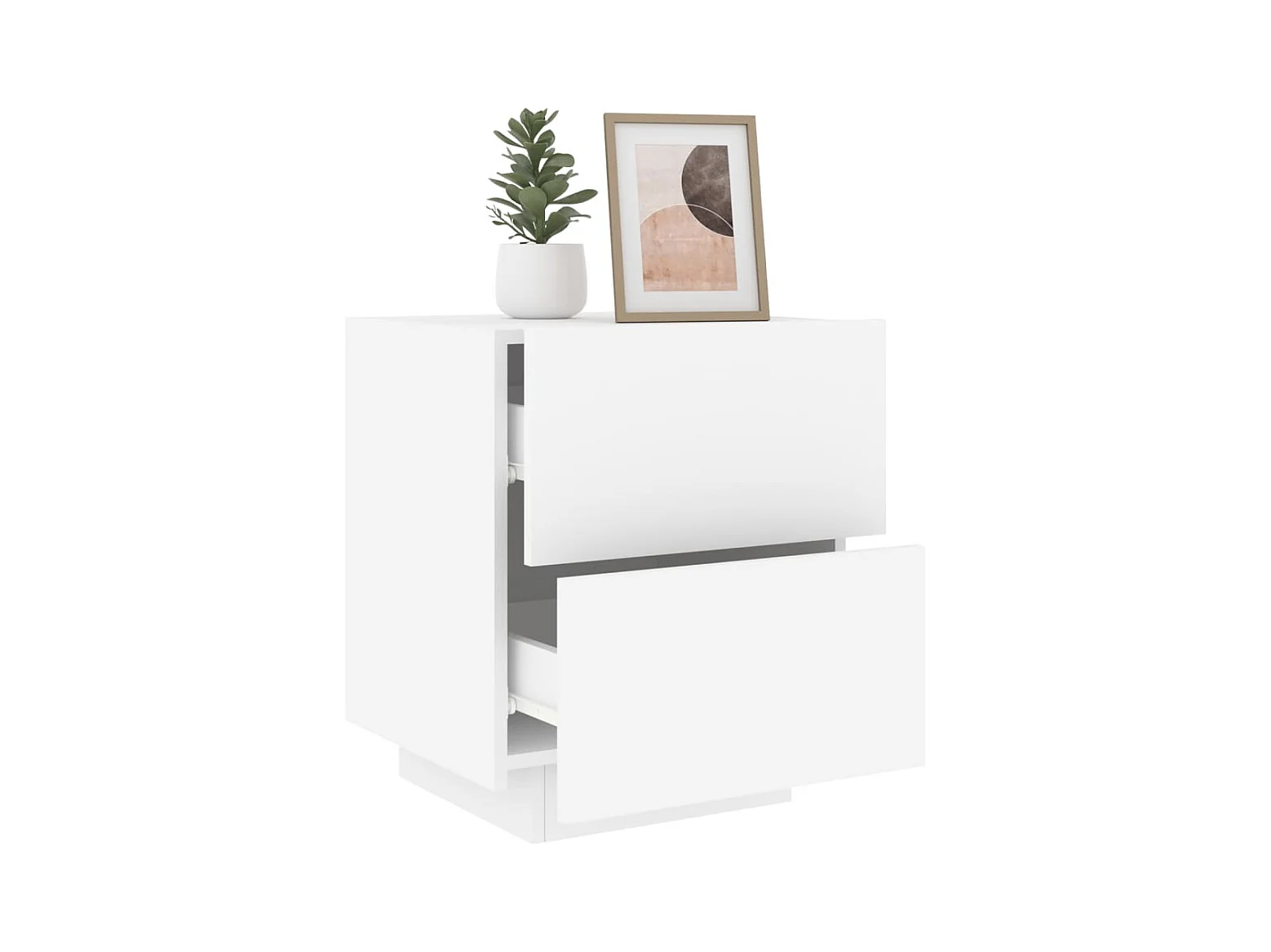 Mesitas de noche con luces LED 2 unidades blanco 35x39x55 cm