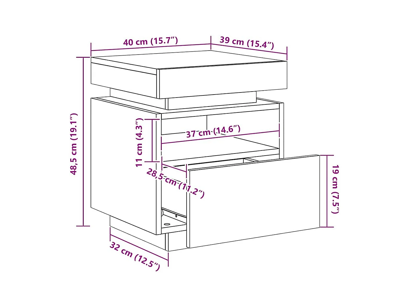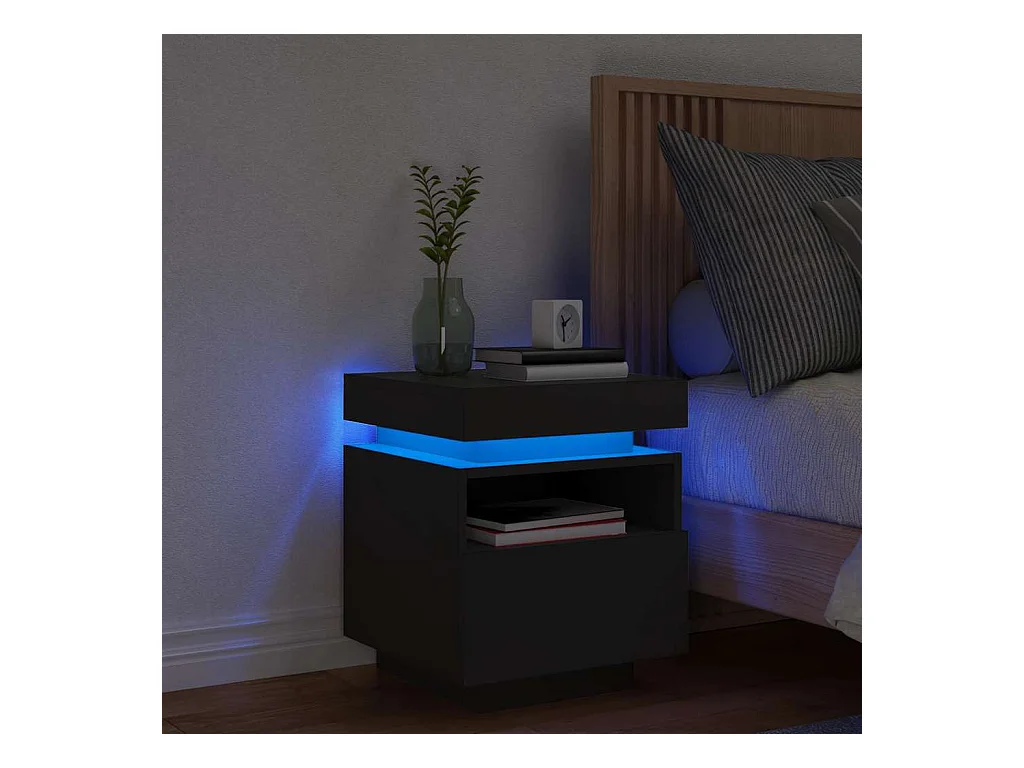 Mesita de noche con luces LED negra 40x39x48,5 cm