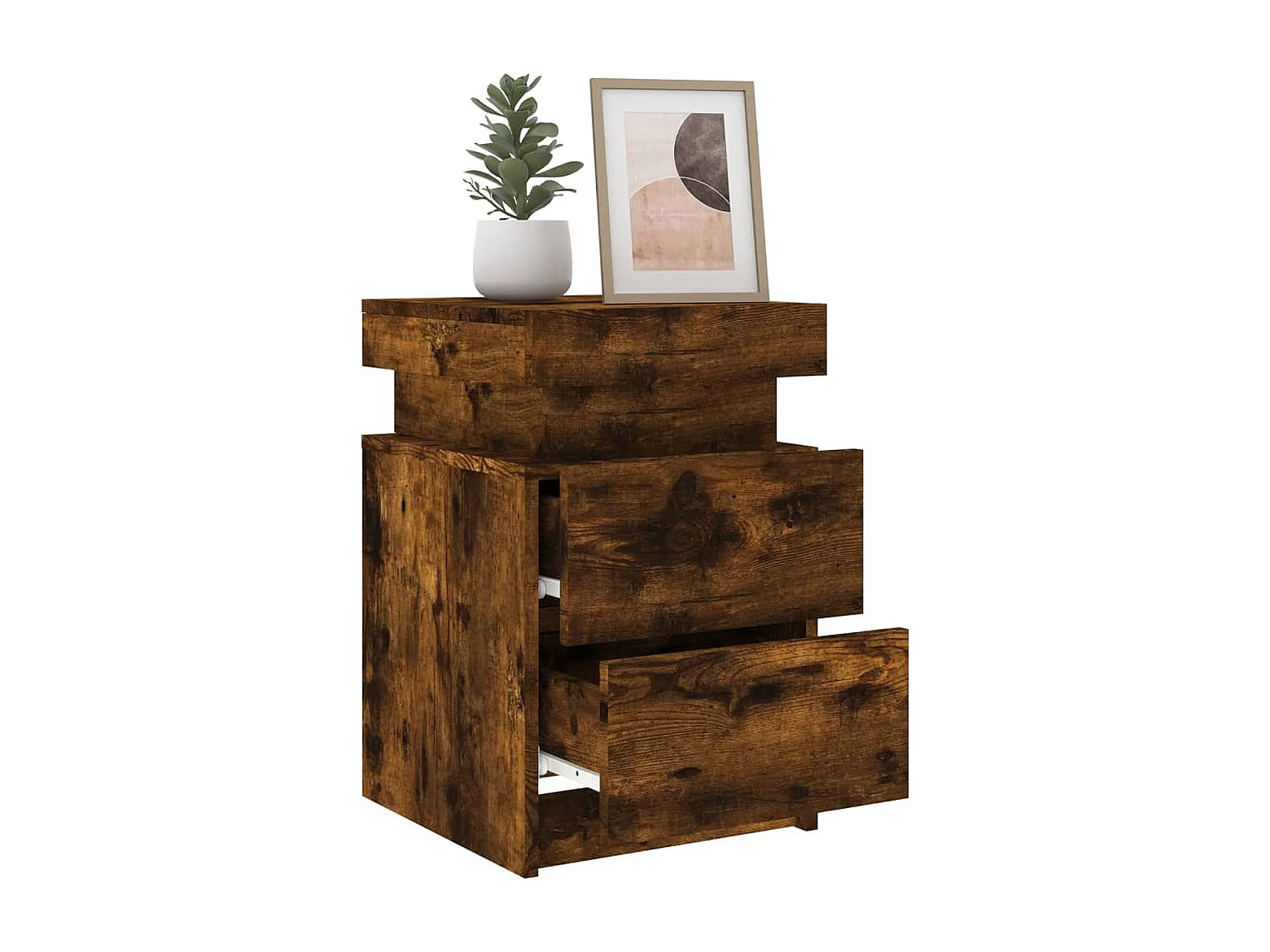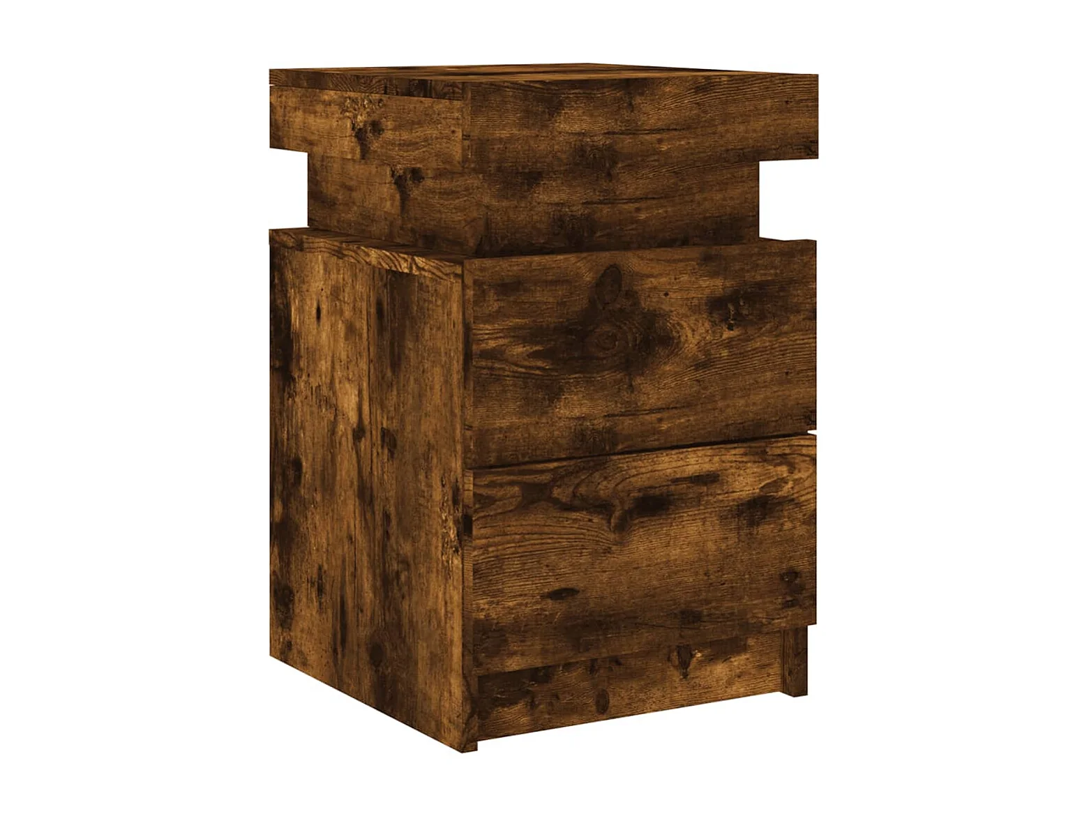 Mesita de noche con luces LED roble ahumado 35x39x55 cm