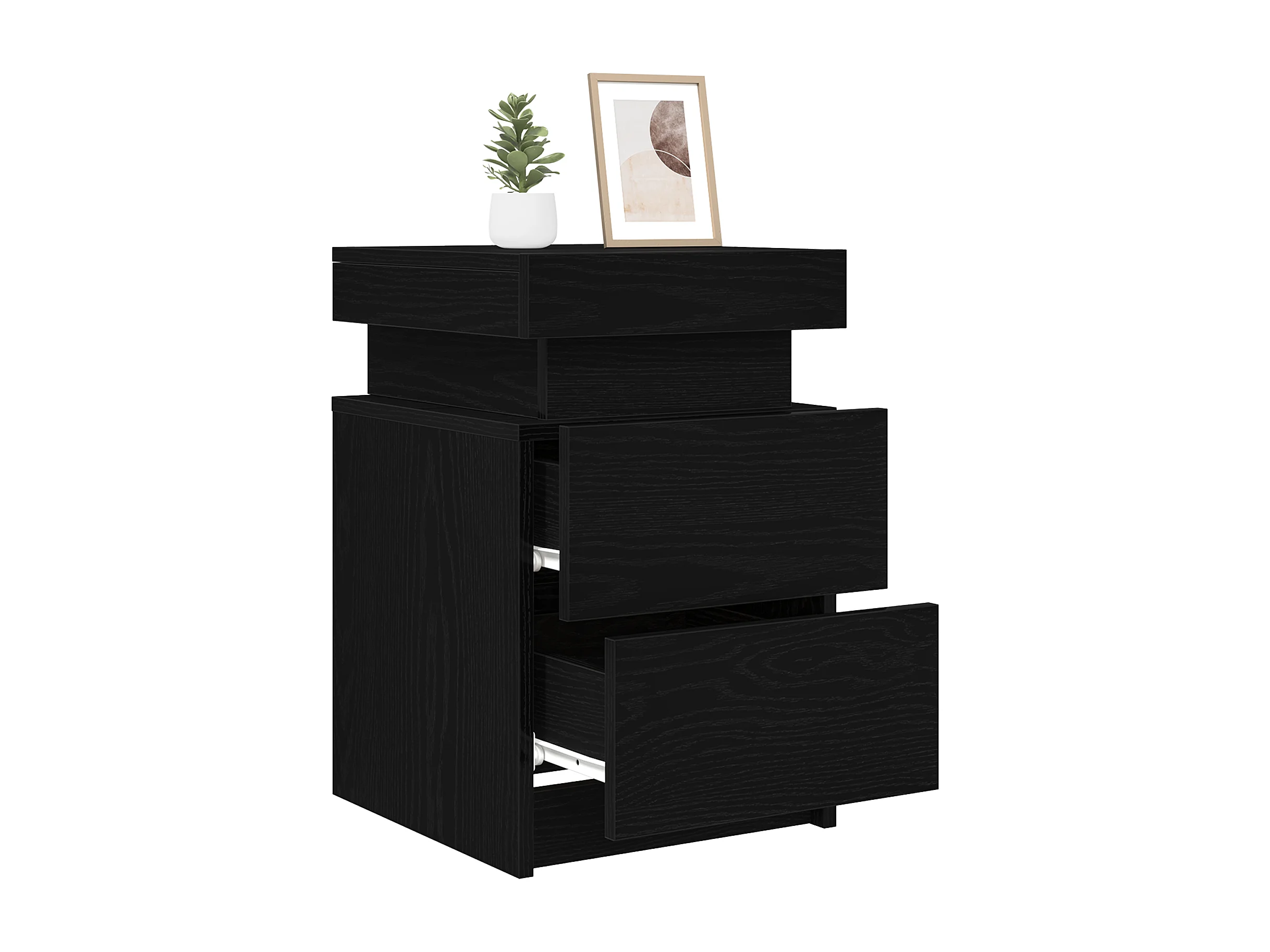 Mesita de noche con luces LED negra 40x39x37 cm