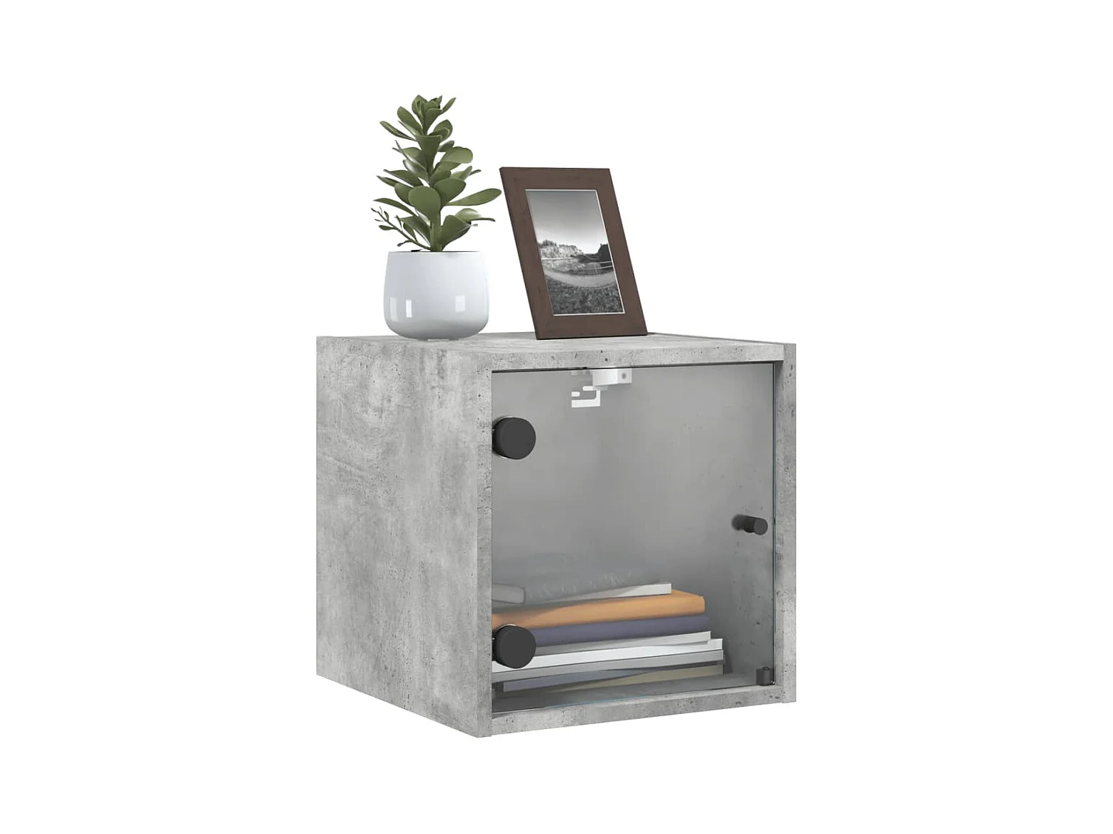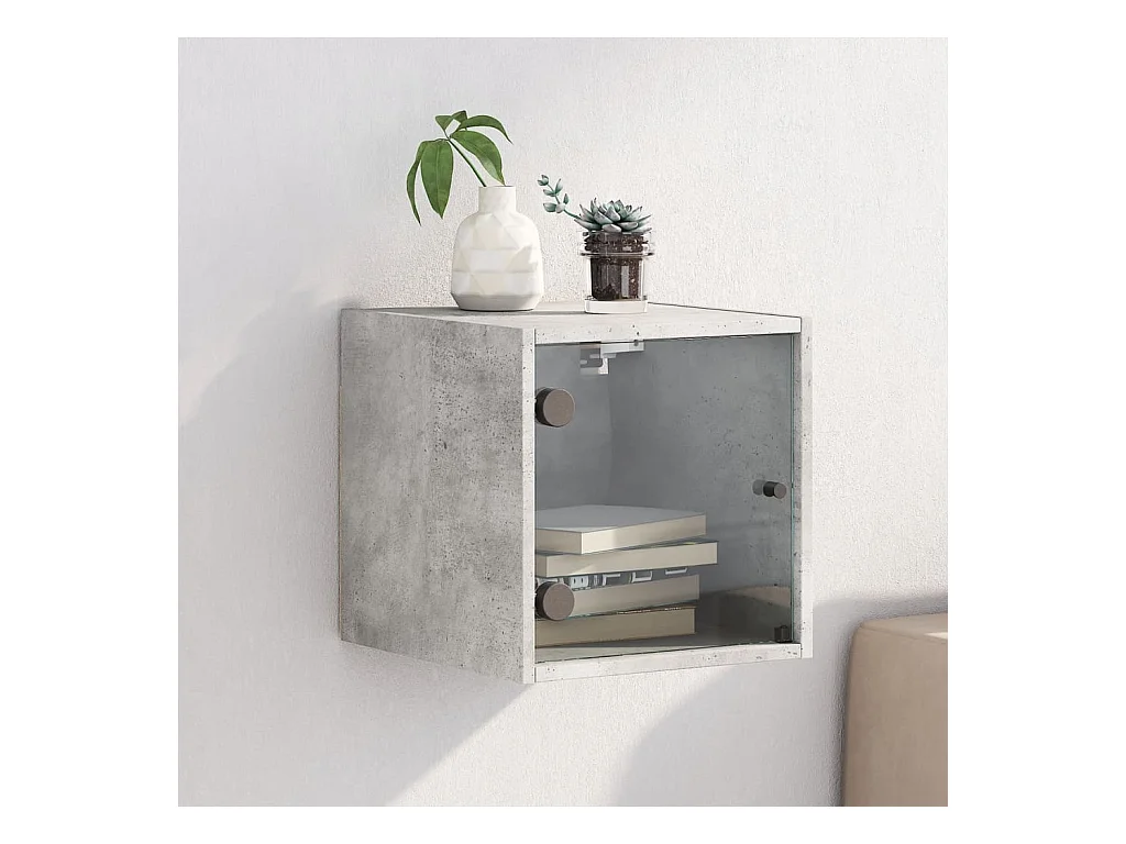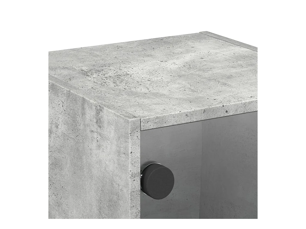 Mesita de noche con puerta de vidrio gris hormigón 35x37x35 cm