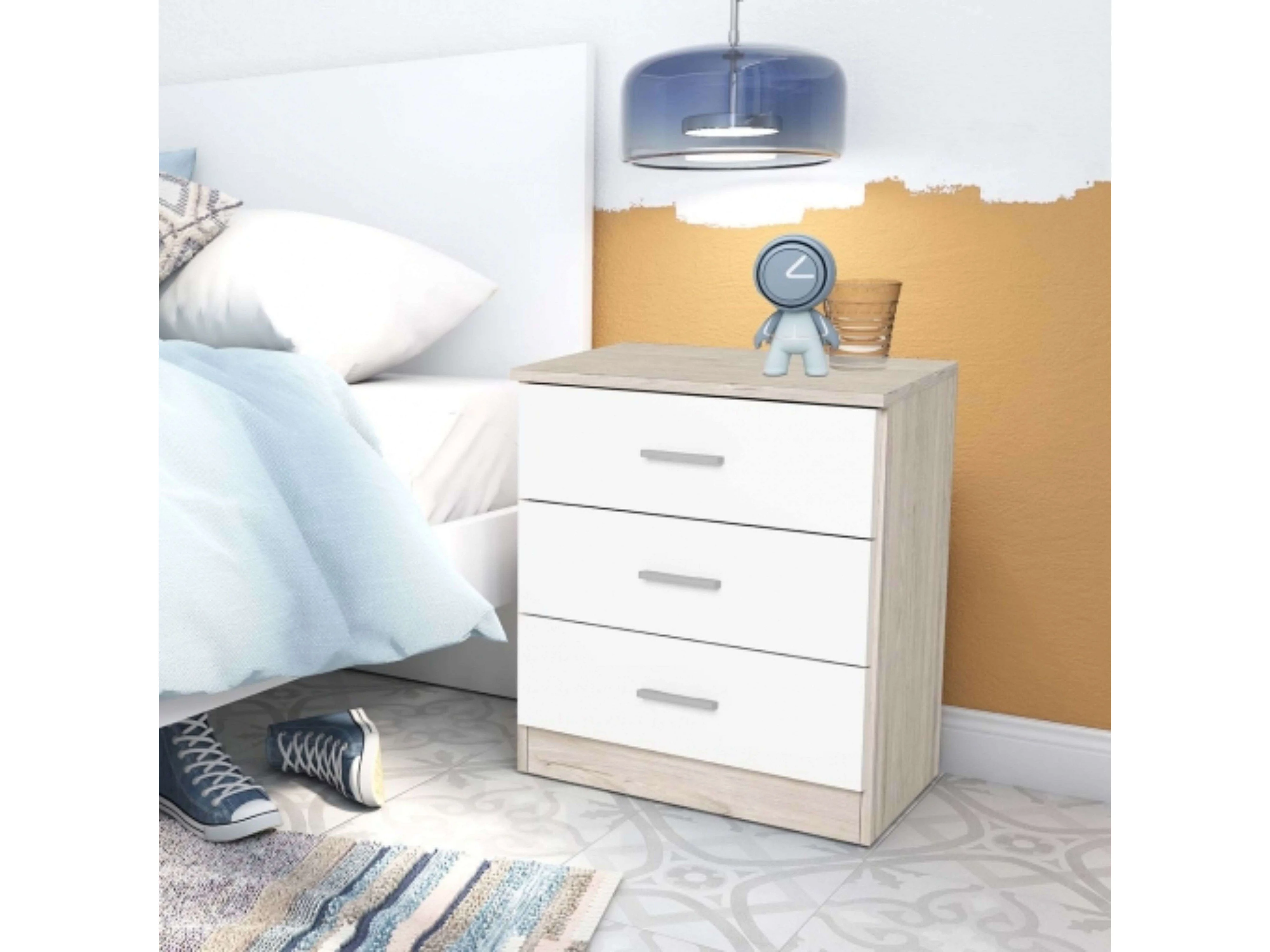Mesita Sara Dormitorio Nórdico Roble Sonoma y Kashmir 3 Cajones 50x60x35 cm