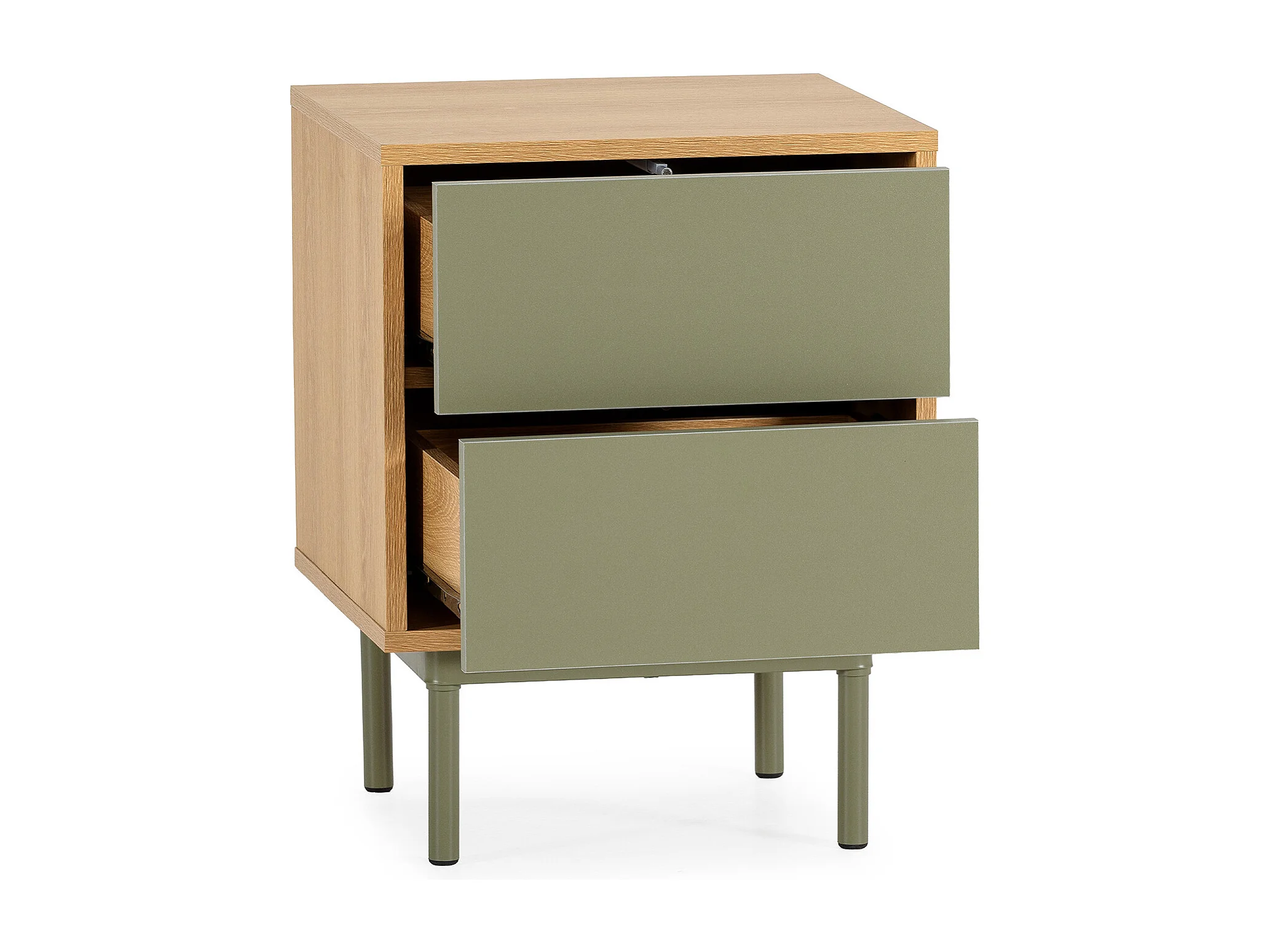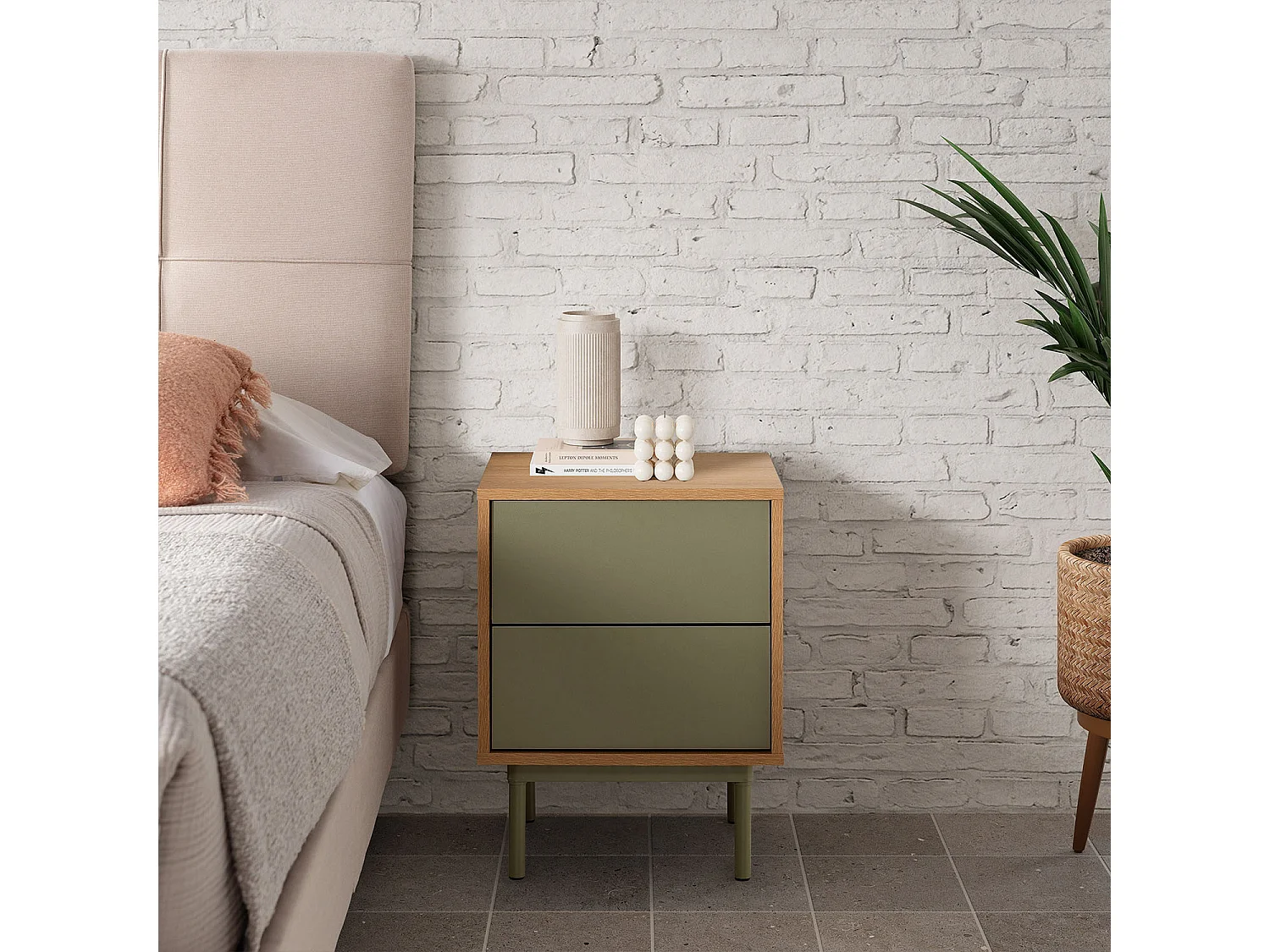 Mesita de noche Nassau 2 cajones efecto Roble/Verde