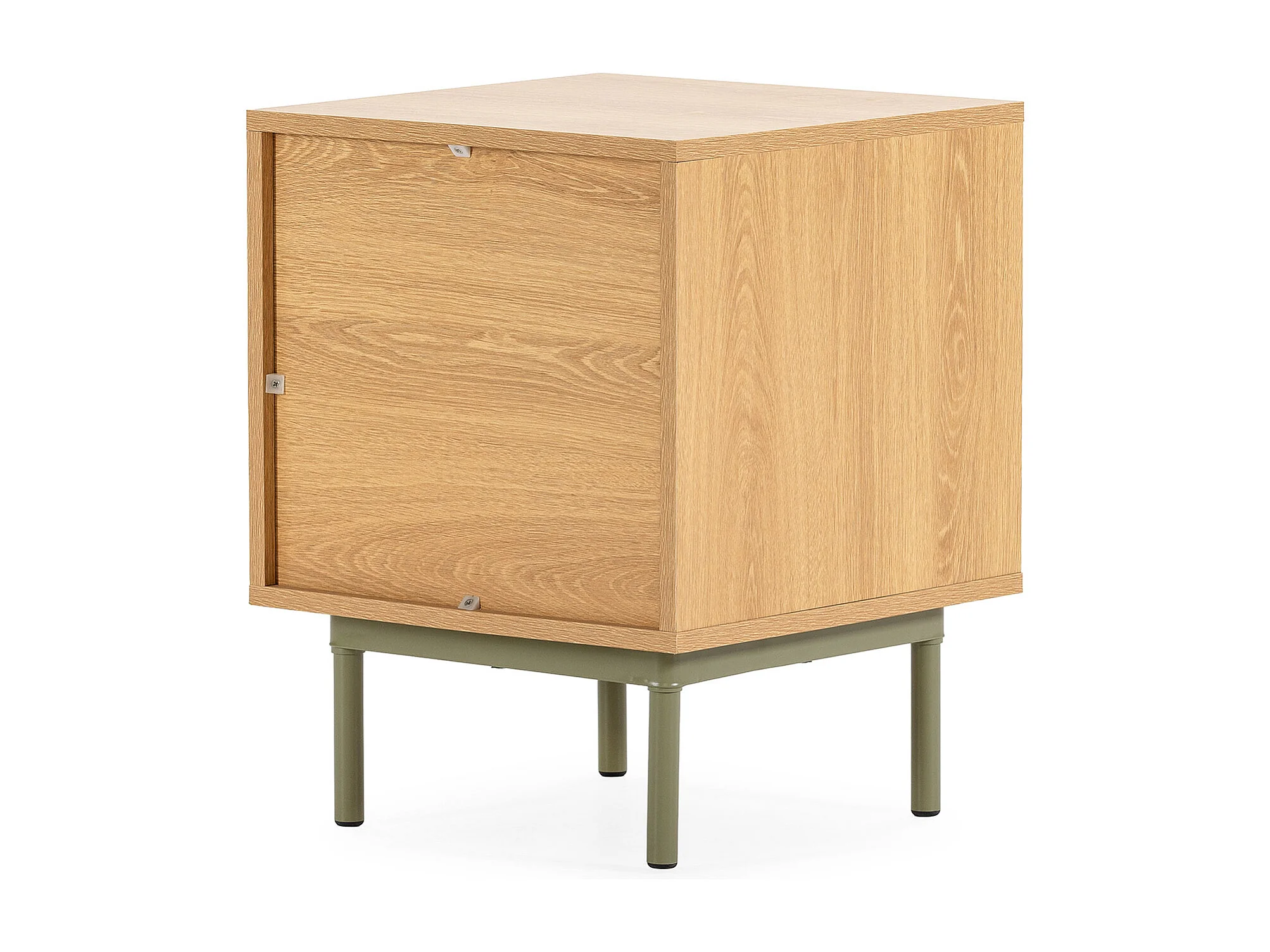 Mesita de noche para dormitorio Emma 1 puerta acabado verde kaki/cera blanca, 39.4cm(ancho
