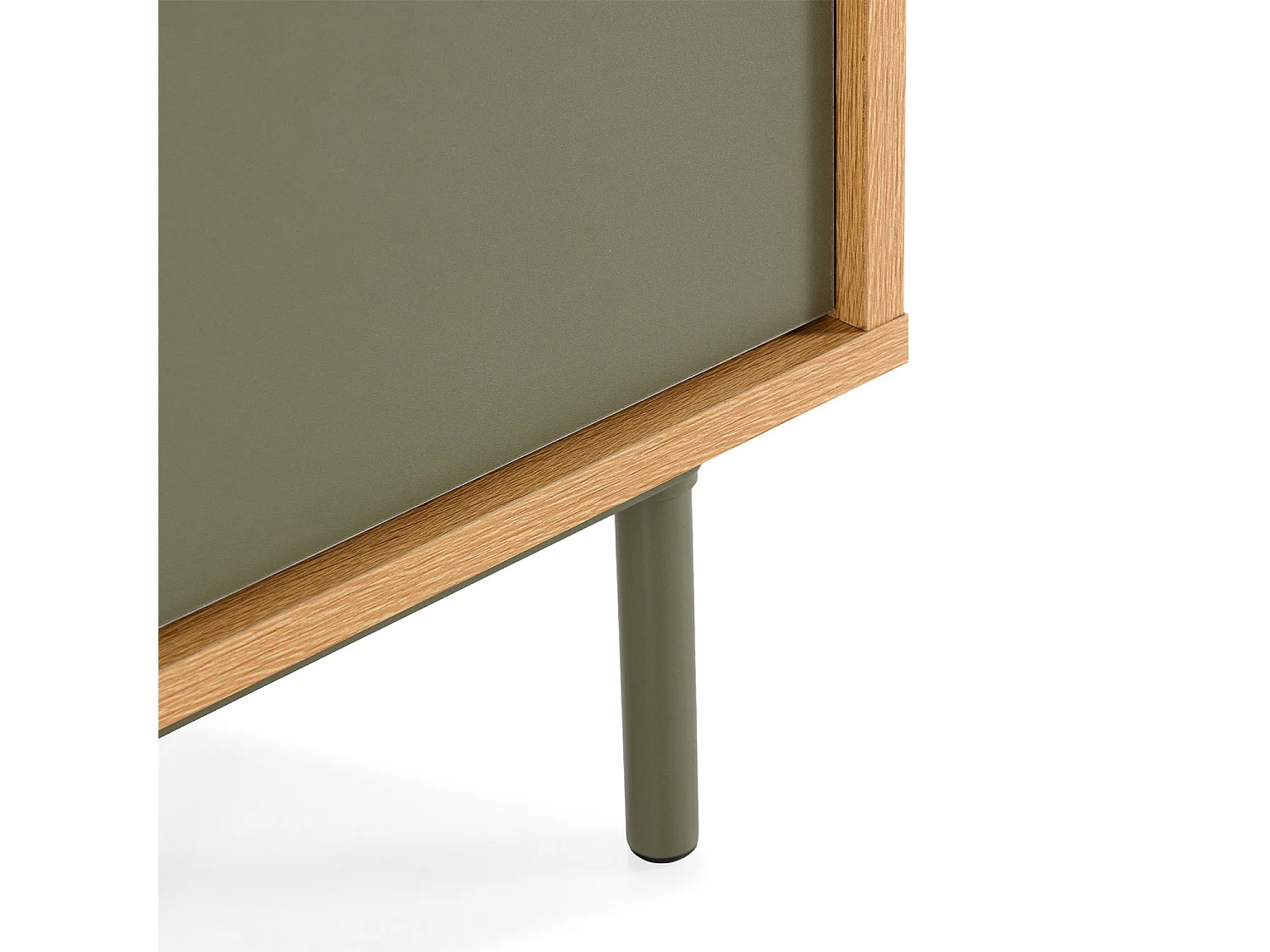 Mesita de noche para dormitorio Estela 2 cajones acabado verde kaki/cera blanca, 40cm(anch