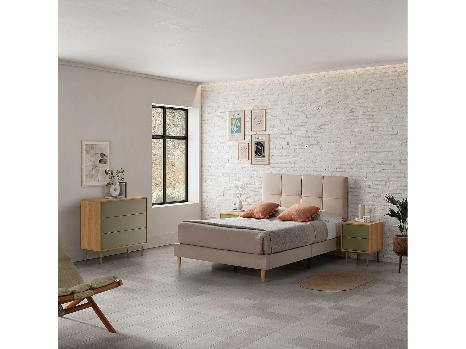 Mesita de noche Cuzco 2 cajones color Roble/Verde