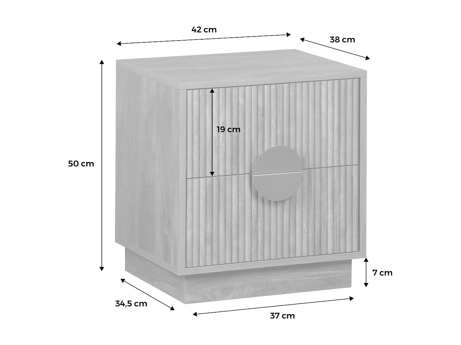 Mesita de noche de 2 cajones efecto madera de mango estriada marrón