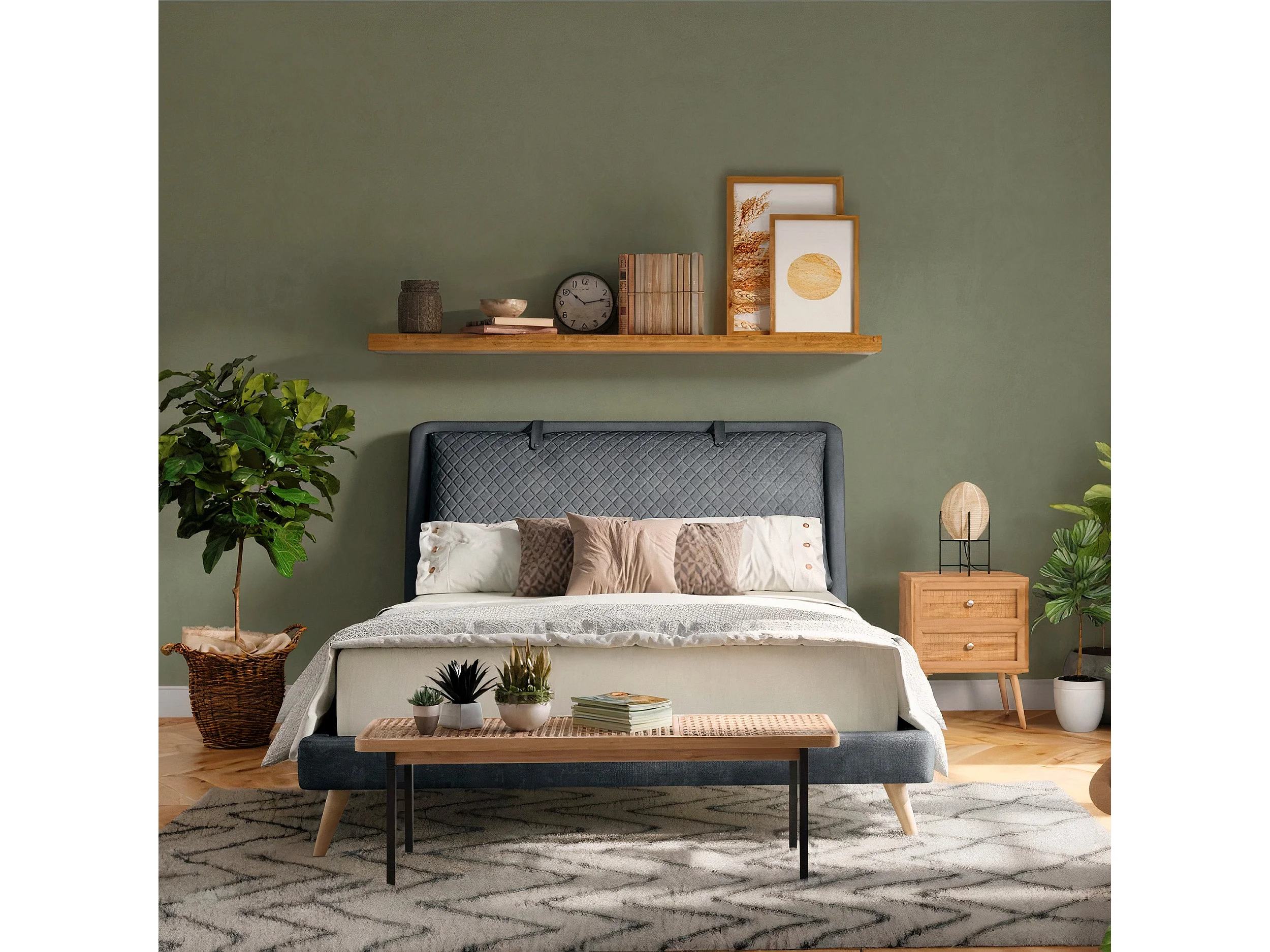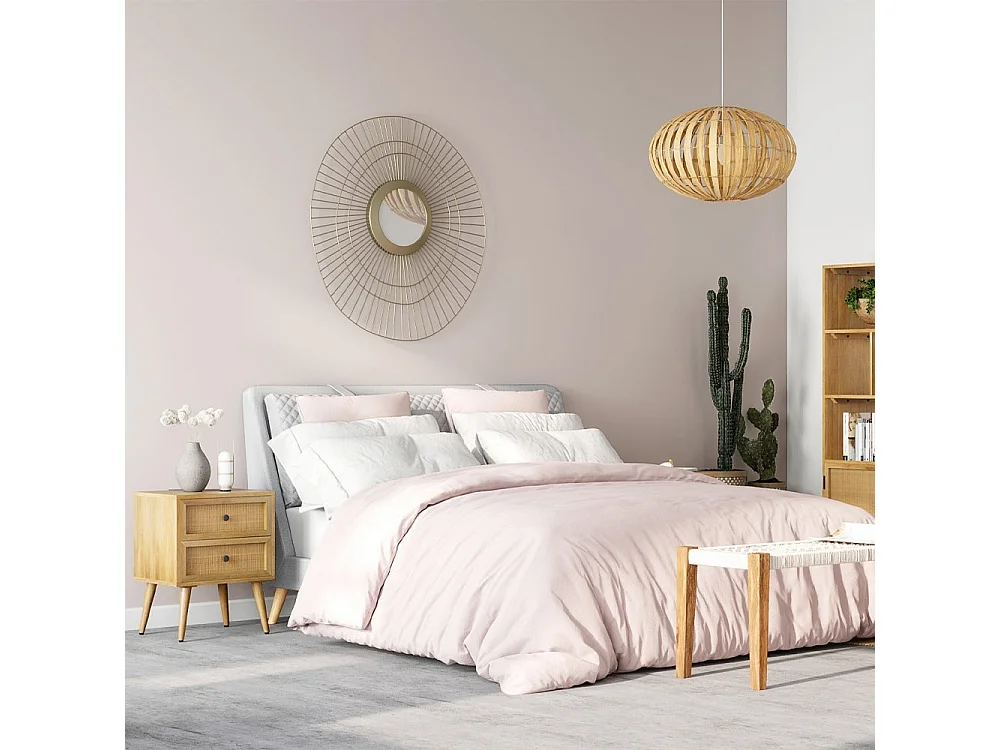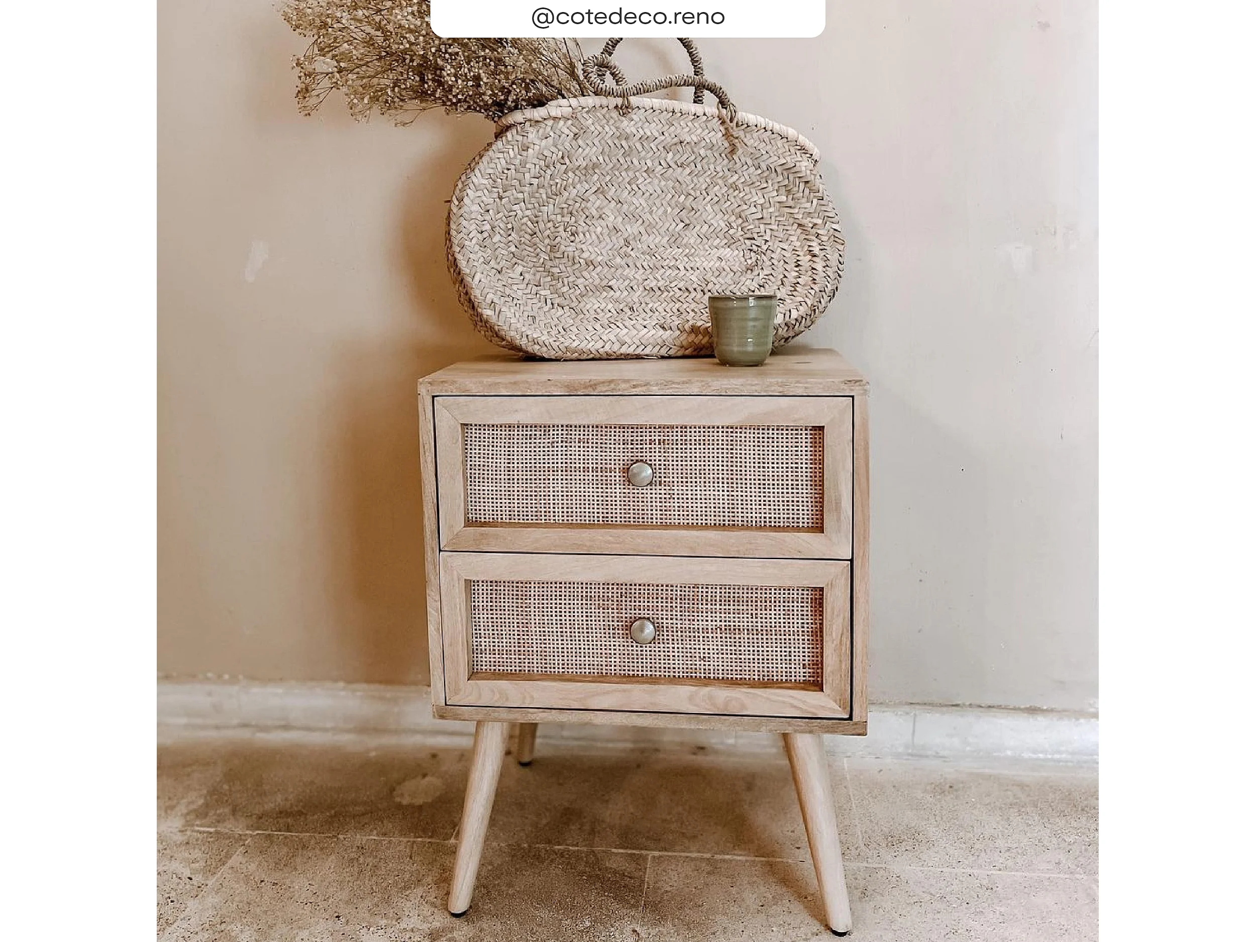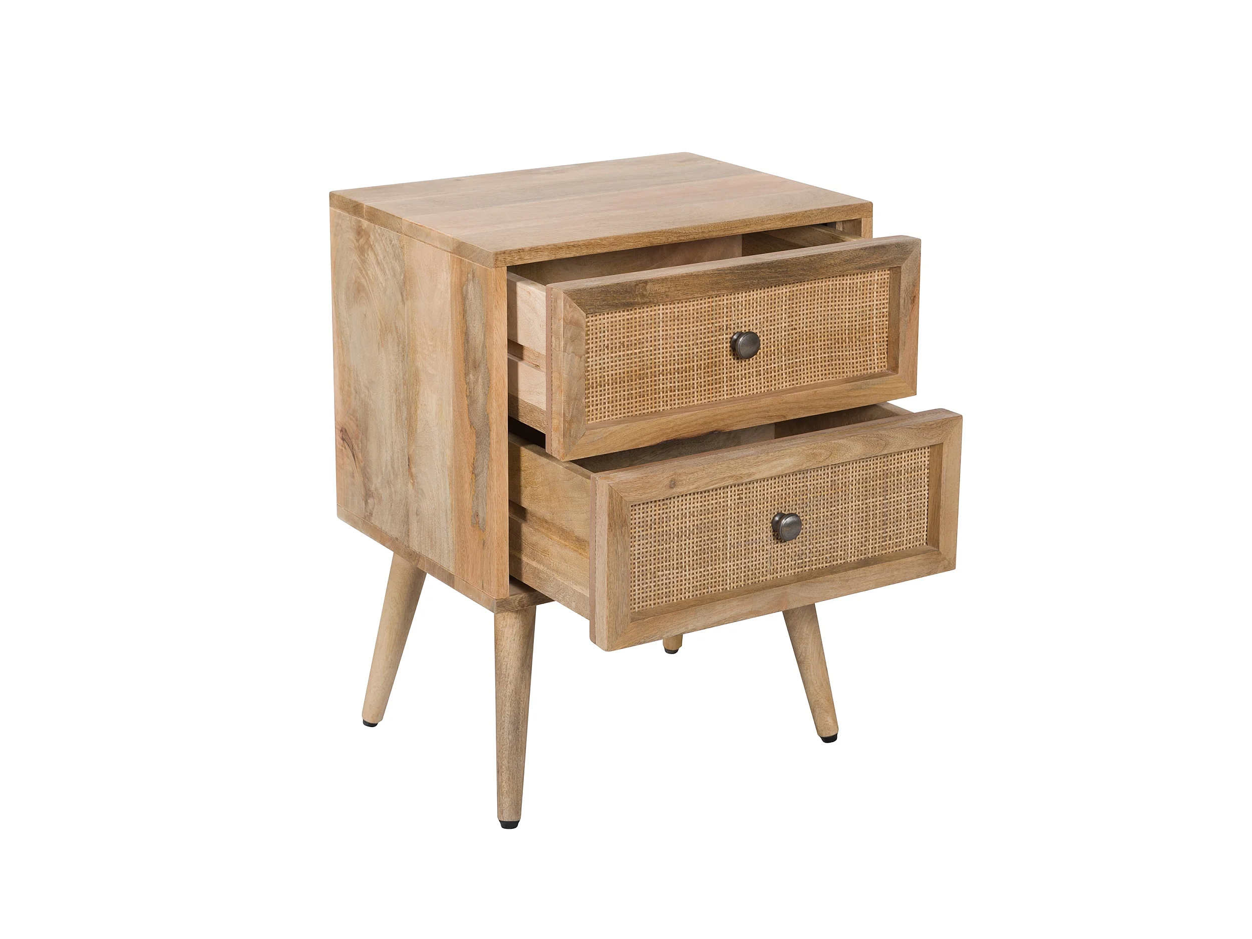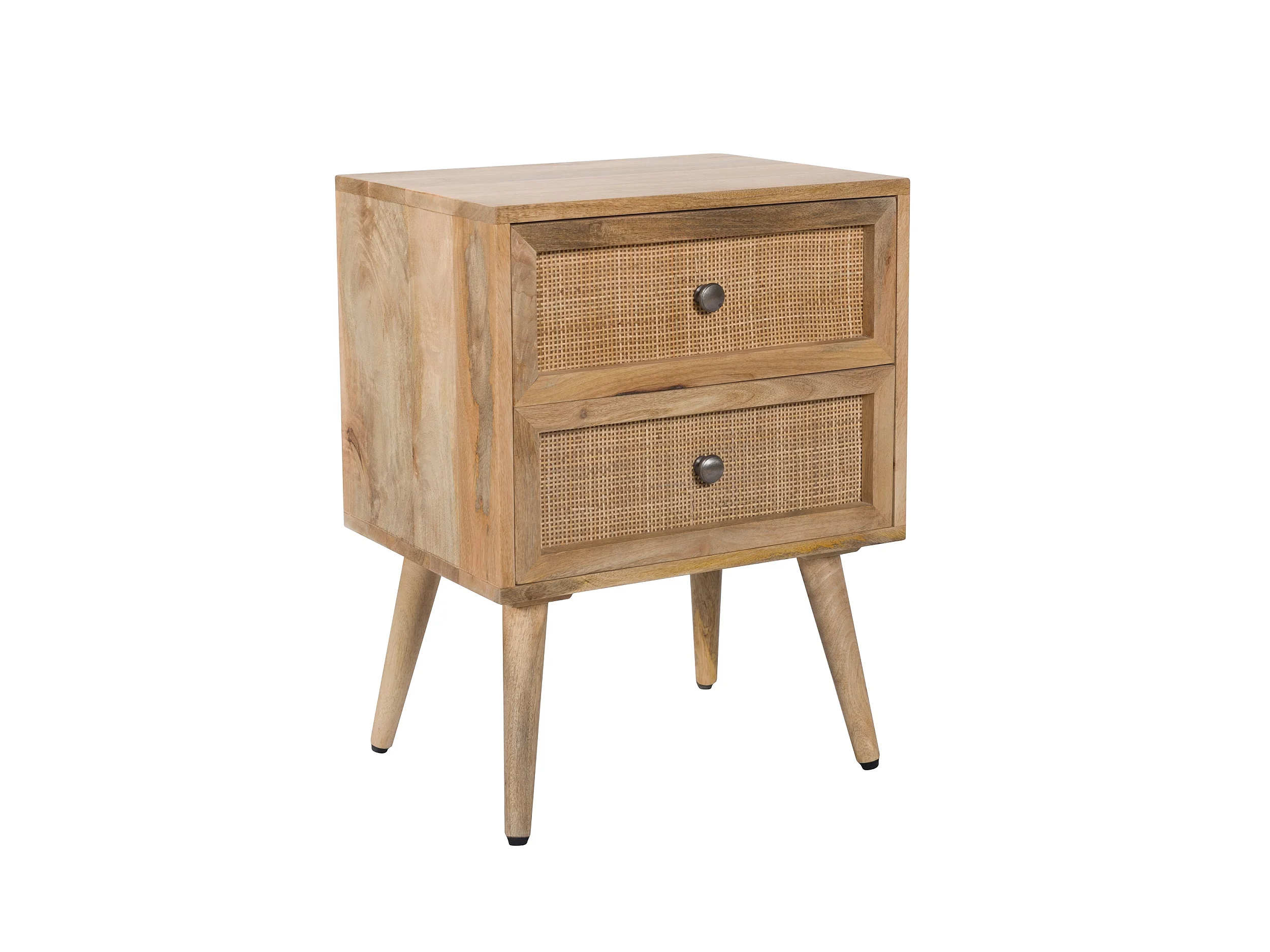 Mesita de noche de 2 cajones en madera de caña y mango - Cody