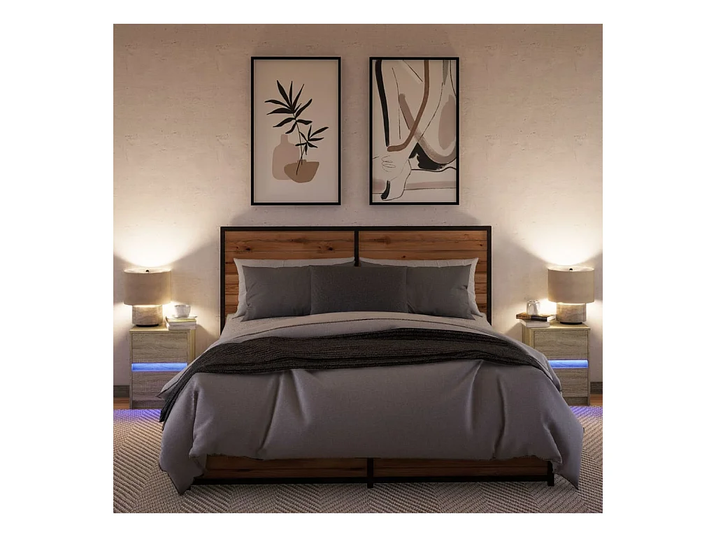 Mesita de noche de 2 piezas y luces LED, roble Sonoma