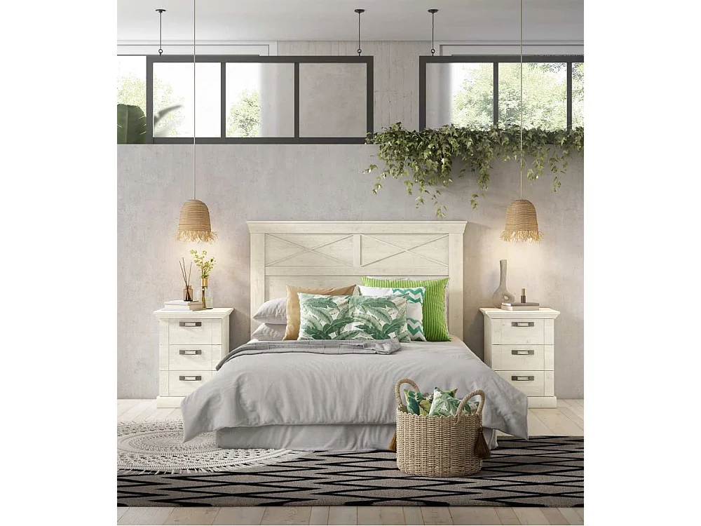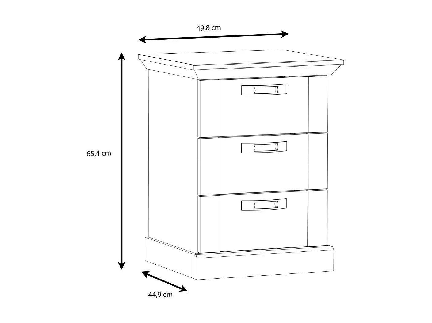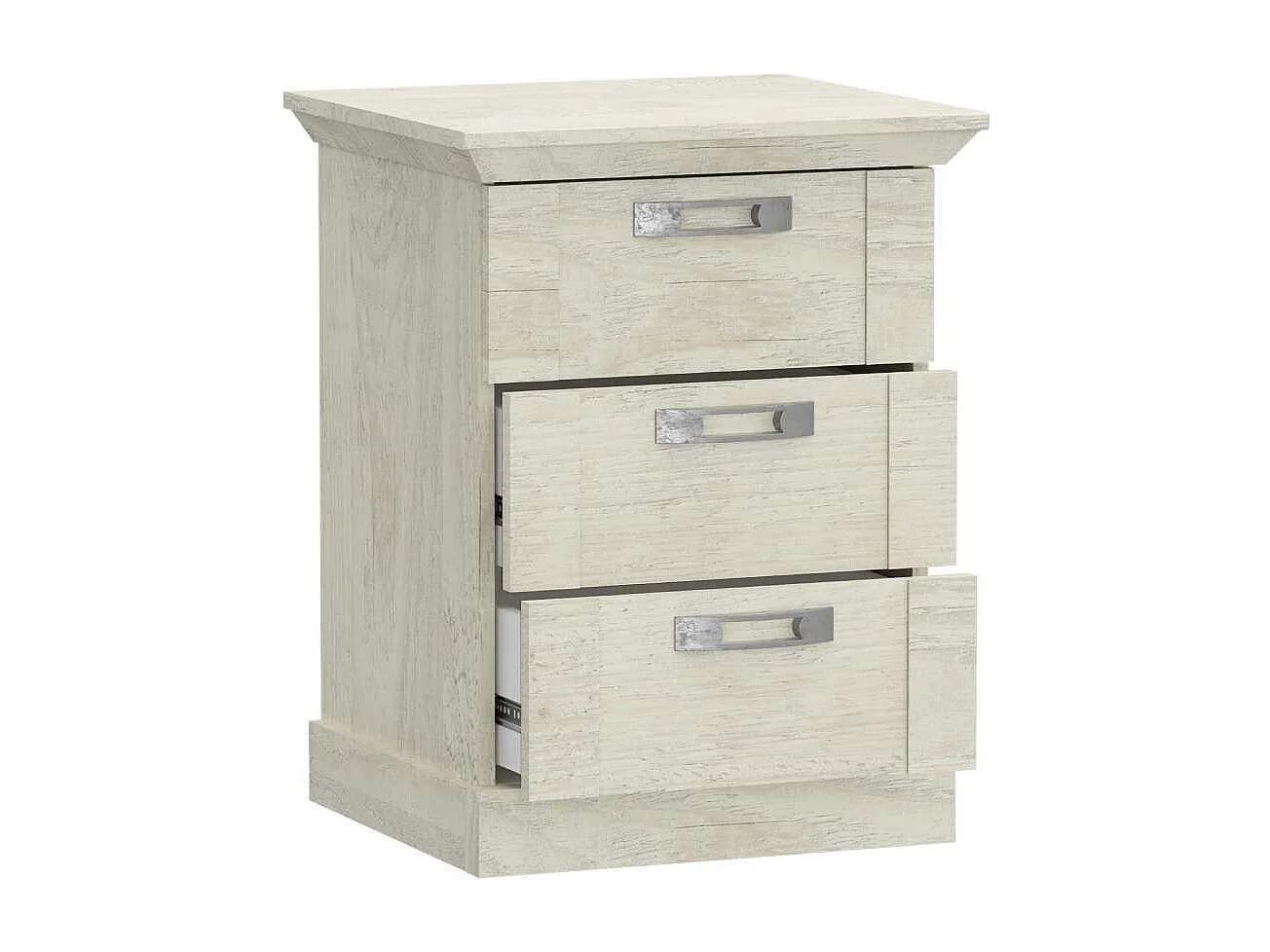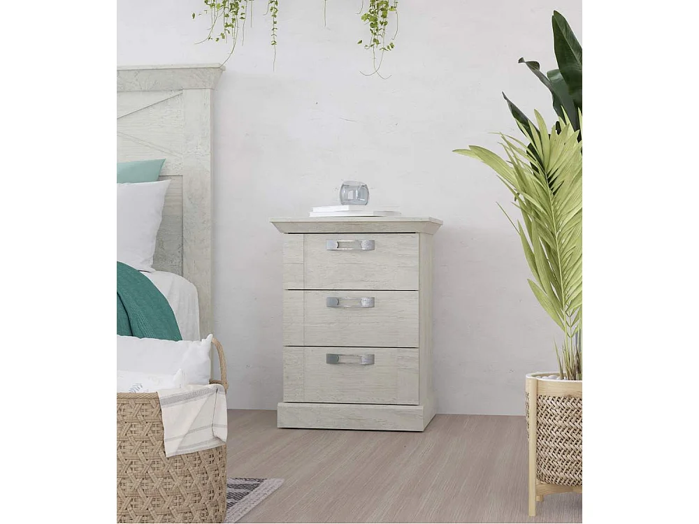 Mesita de noche de 3 cajones de 65,4x49,8x44,9 cm estilo rústico color blanco pino Karen