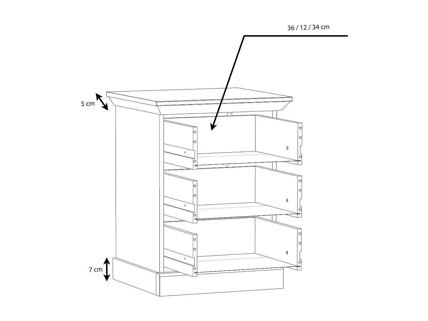 Mesita de noche de 3 cajones de 60x50x34,6 cm en tablero de melamina color cambrian Jana