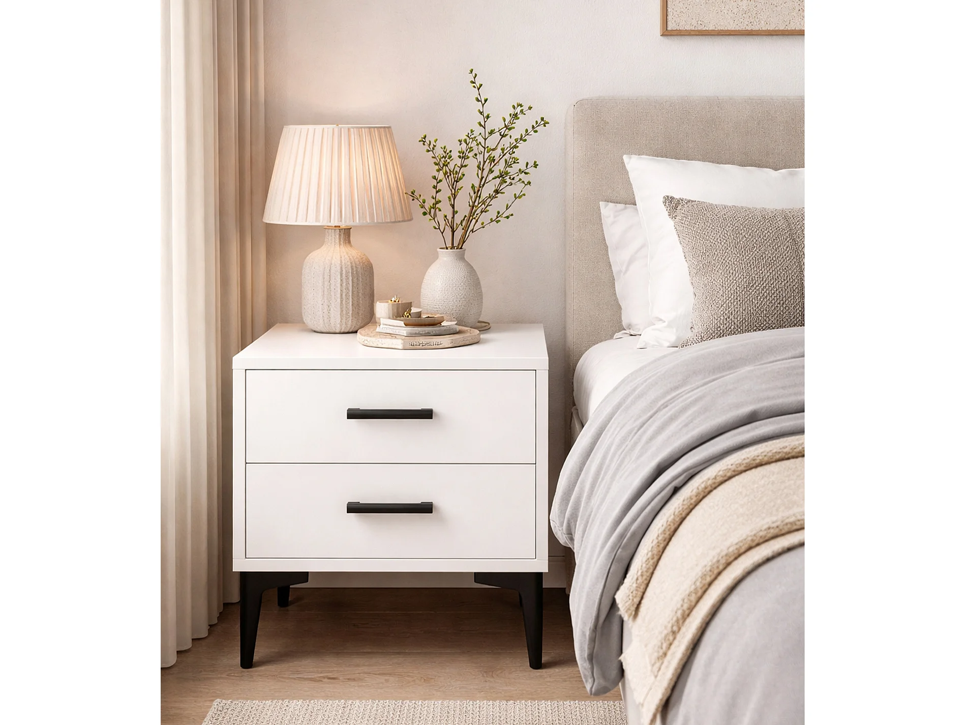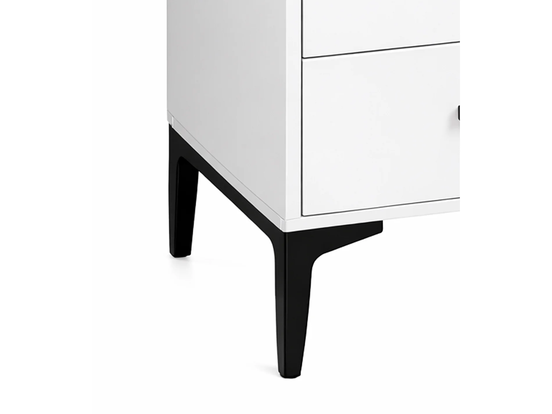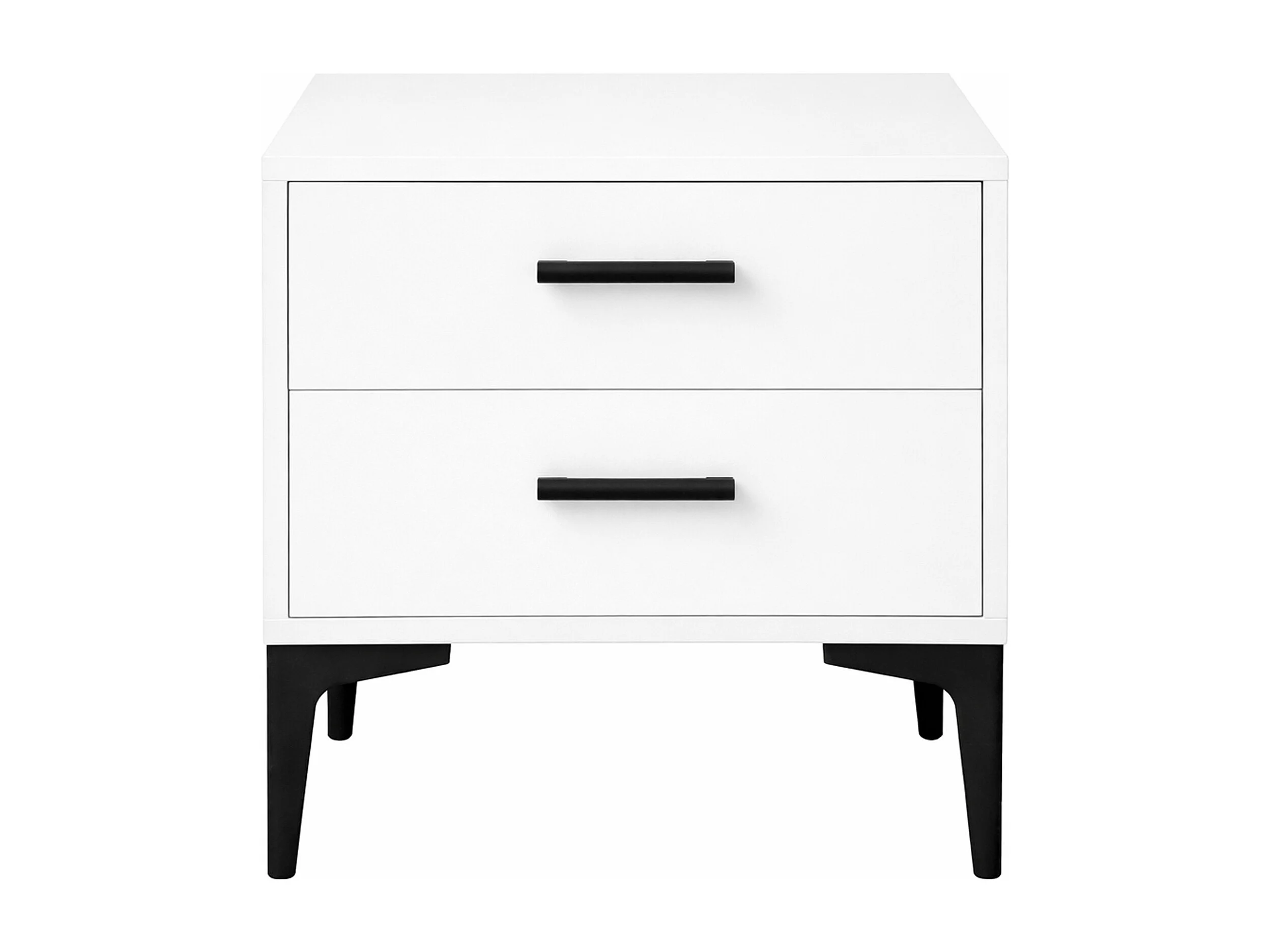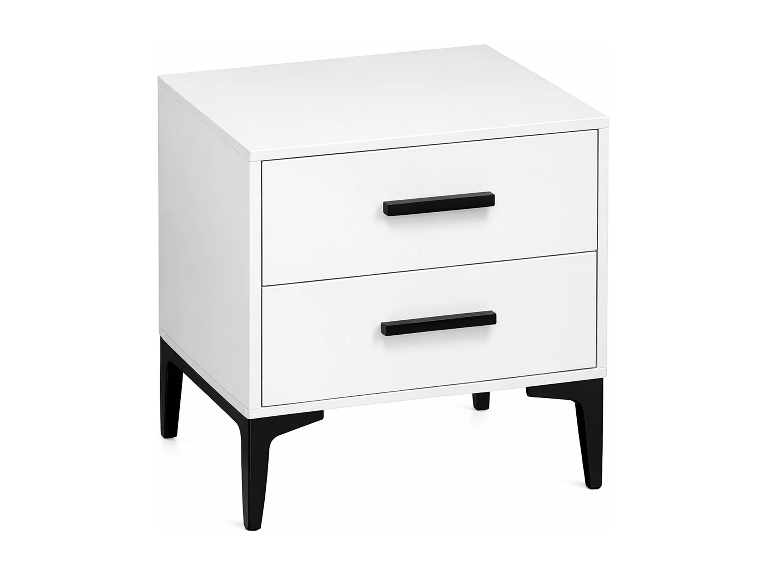 Mesita de noche de 49x40x45 cm con 2 cajones en color blanco, patas metálicas negras Savia