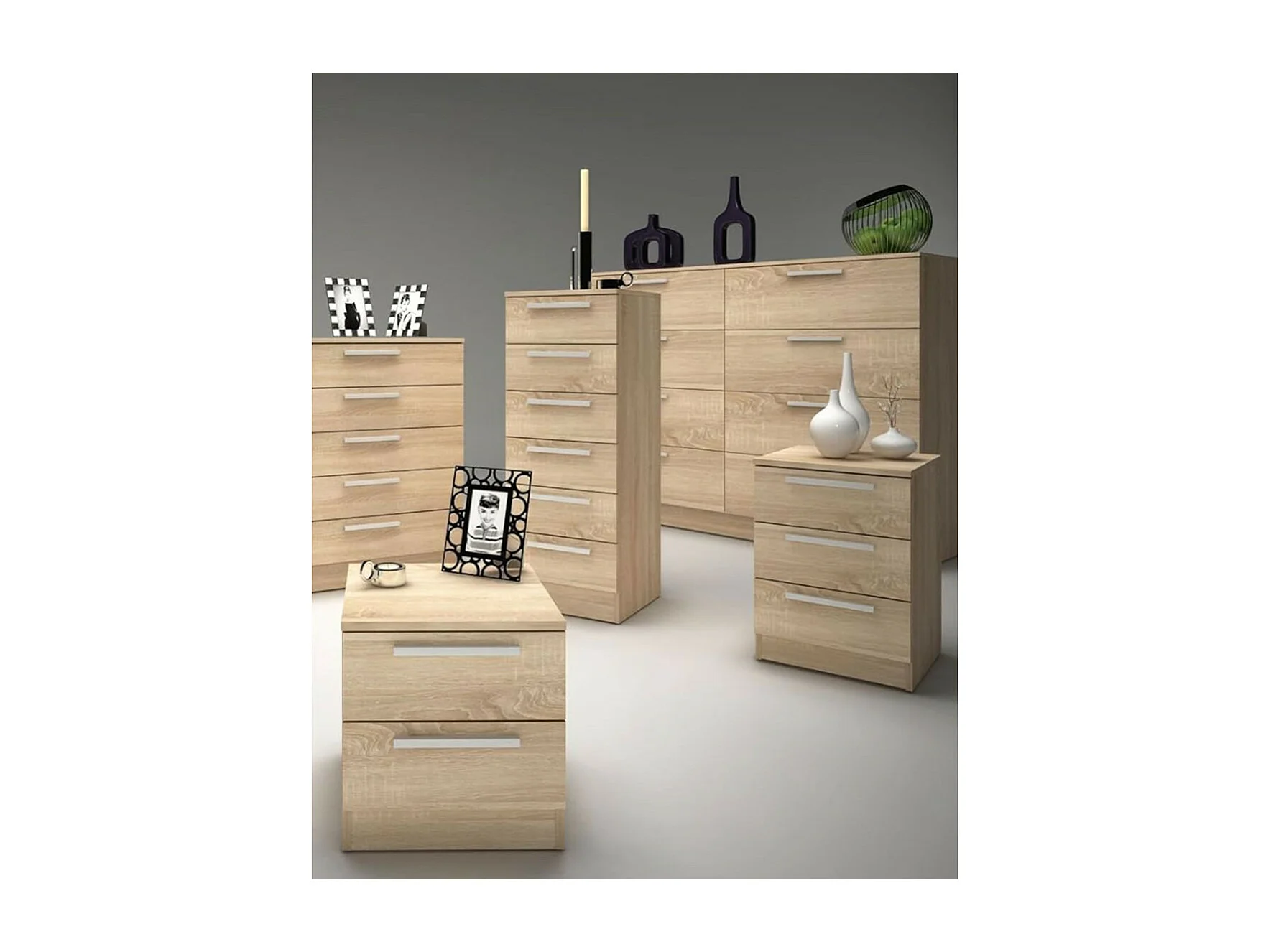 Mesita de noche de 50x40x59 cm con 3 cajones en madera aglomerada en color roble Cube 3