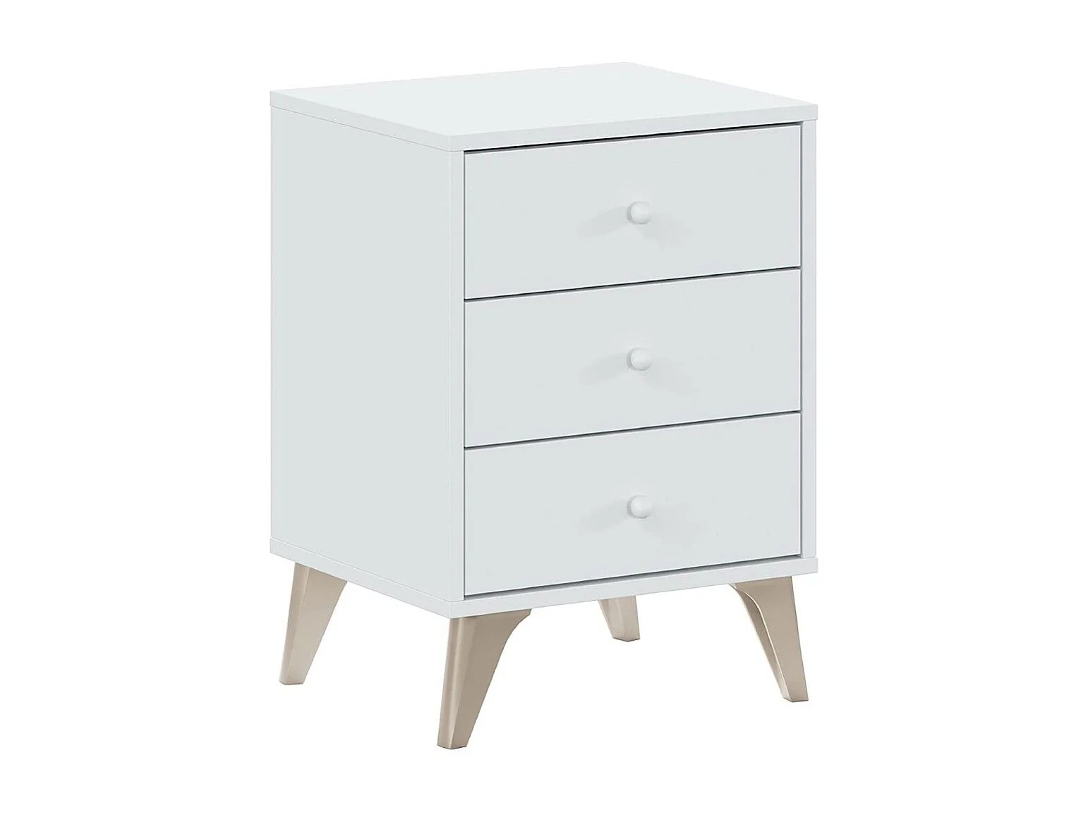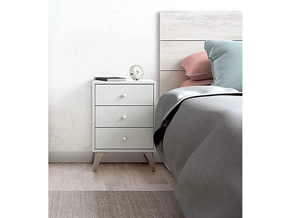 Mesita de noche de 56x40x34 cm con 3 cajones en aglomerado en color blanco Candy