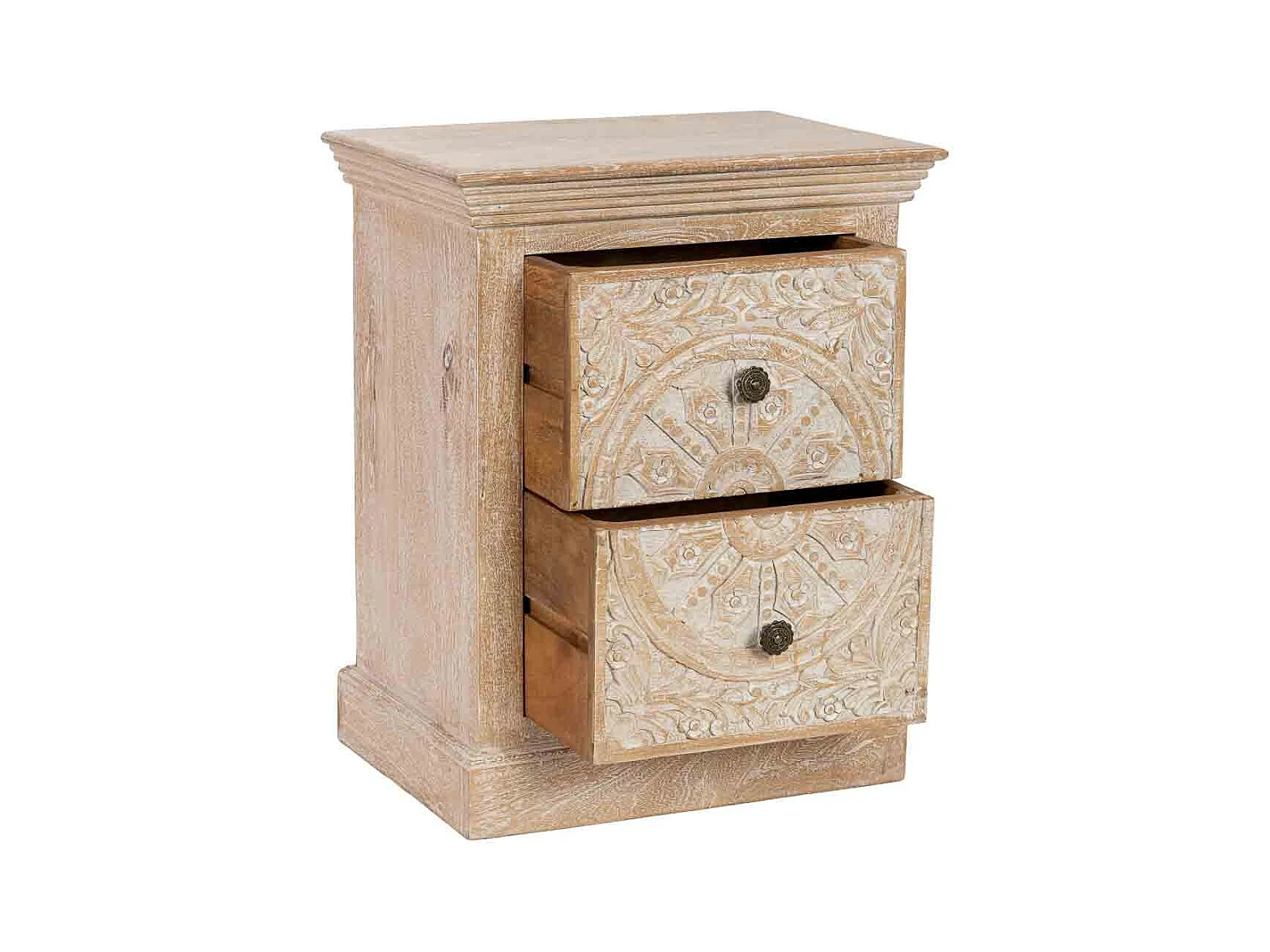 Mesita de noche de Madera artesanal 2 cajones 56x40x70h cm
