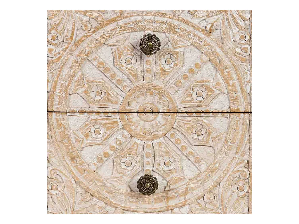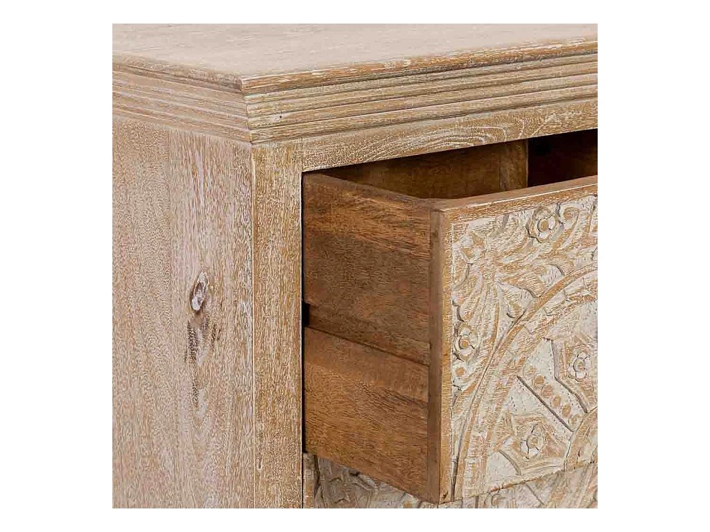 Mesilla de noche de madera de mango macizo tallada y metal dorado LINIUM