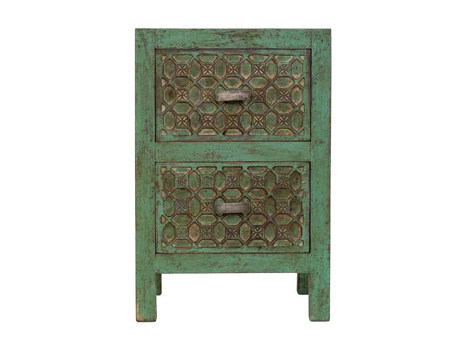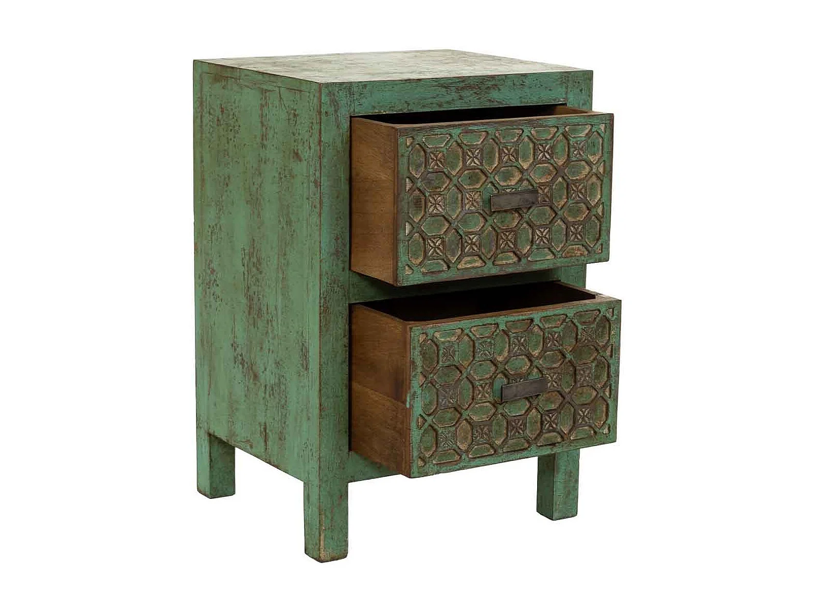 Mesita de noche de madera artesanal verde 45x35x60h cm