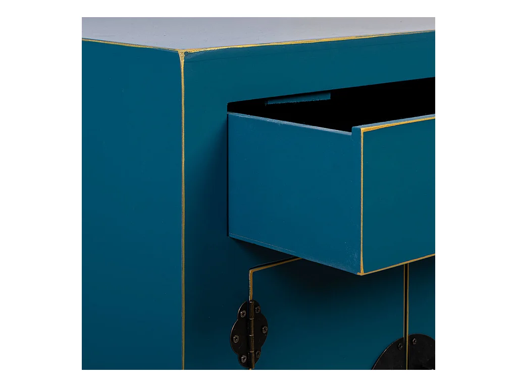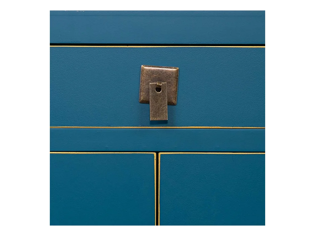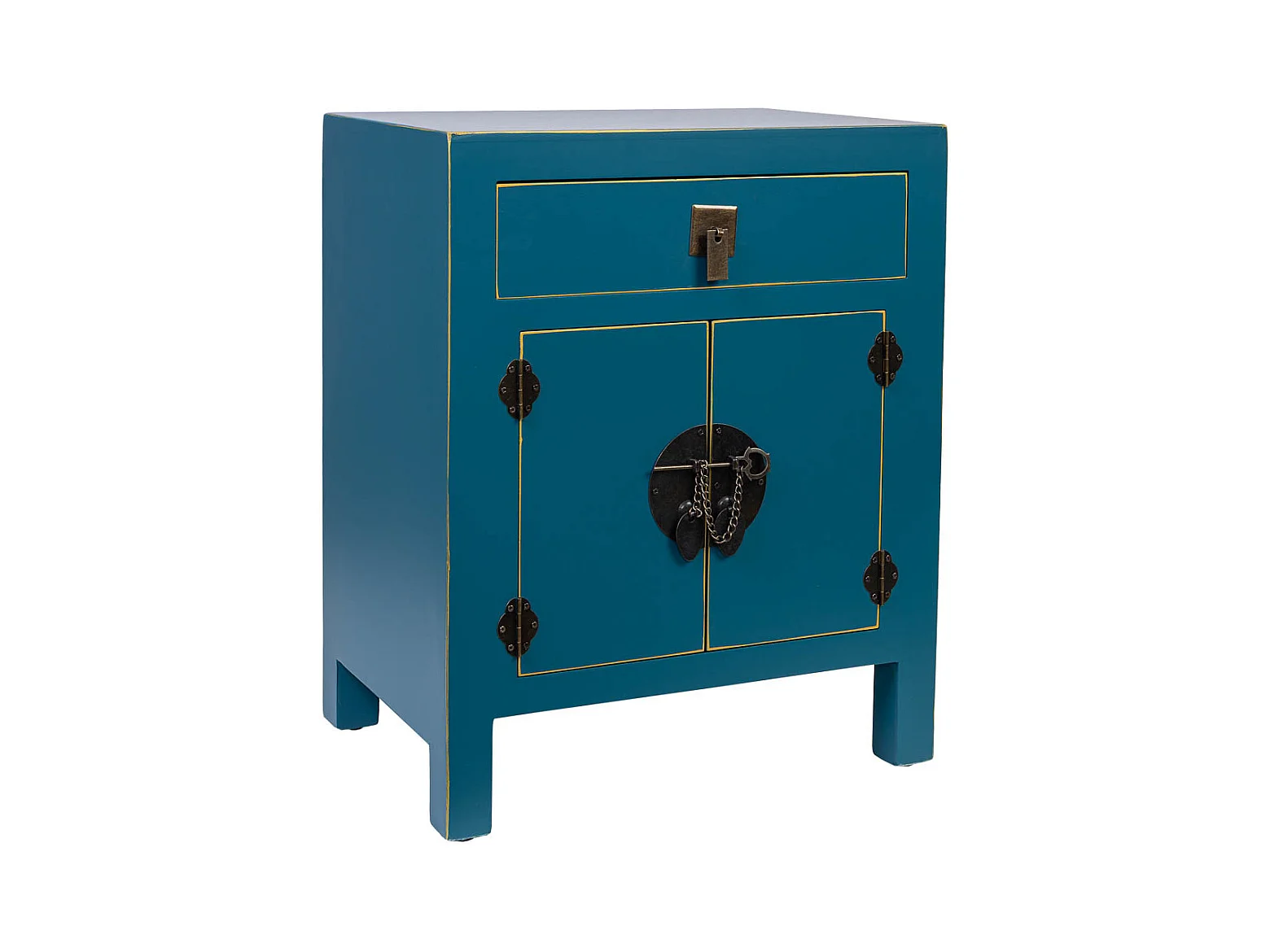 Mesita de noche madera maciza de mango turquesa pintada a mano ES30361