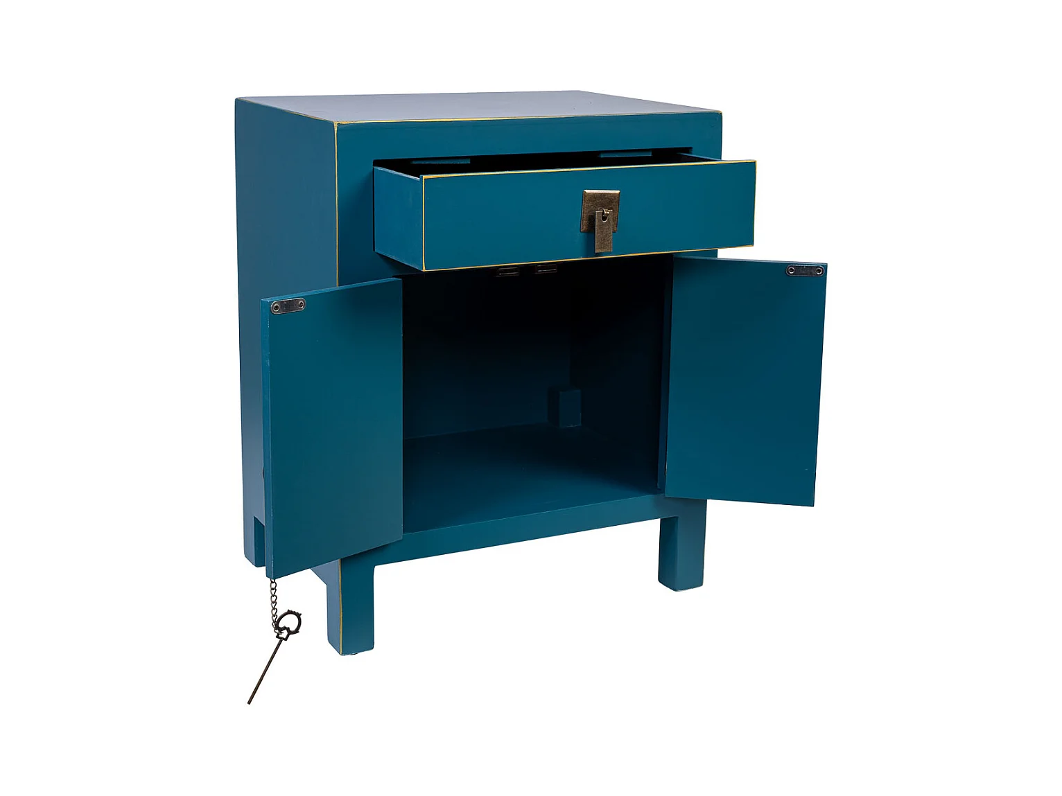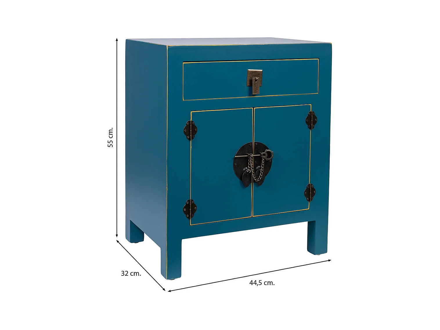 Mesita de noche de madera lacada en azul 46x32x52h cm