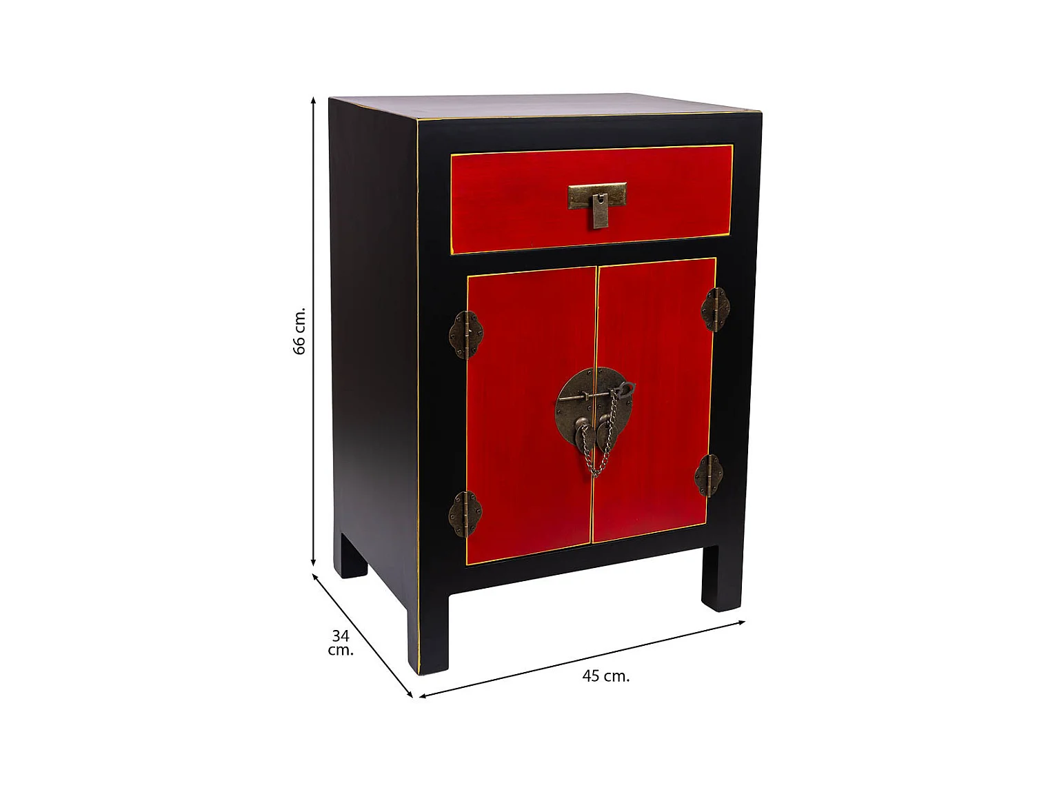 Mesita de madera lacada de 1 cajón y 2 puertas 48x32x70h cm - Rojo