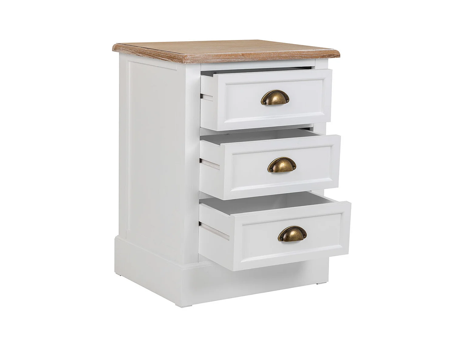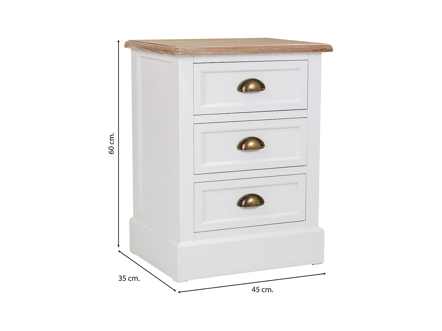 Mesita de noche de madera de 3 cajones blanco 45x35x60h cm